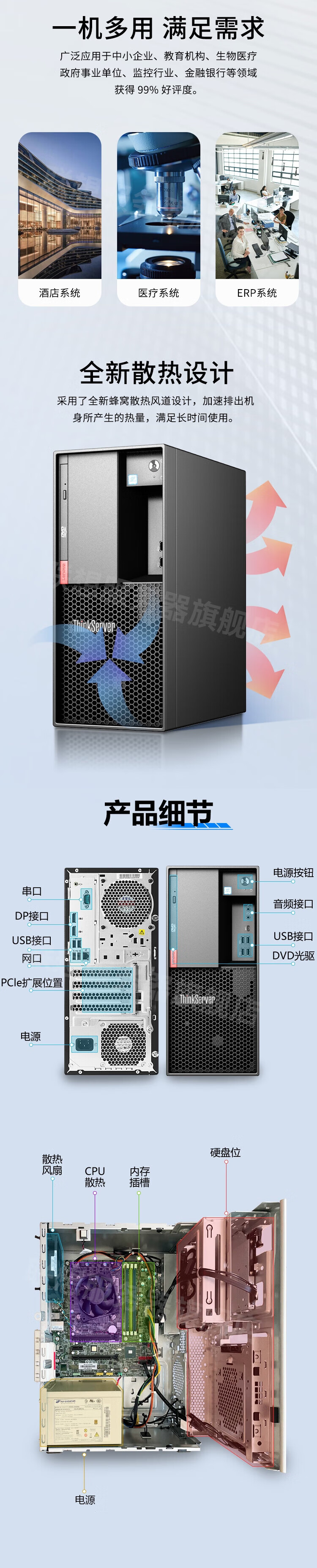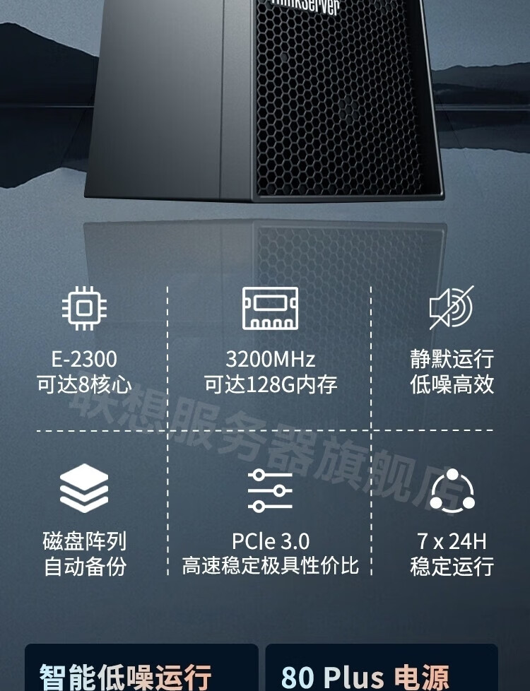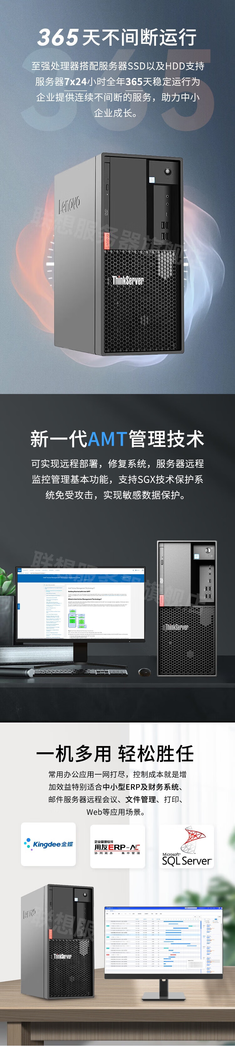 联想(Lenovo)TS90X ST45V3 小型【塔式服务器】工作站电脑主机 金蝶用友ERP财务办公 【TS90X】至强E2324G四核3.1GHz 32G内存丨2块1T固态丨RAID1