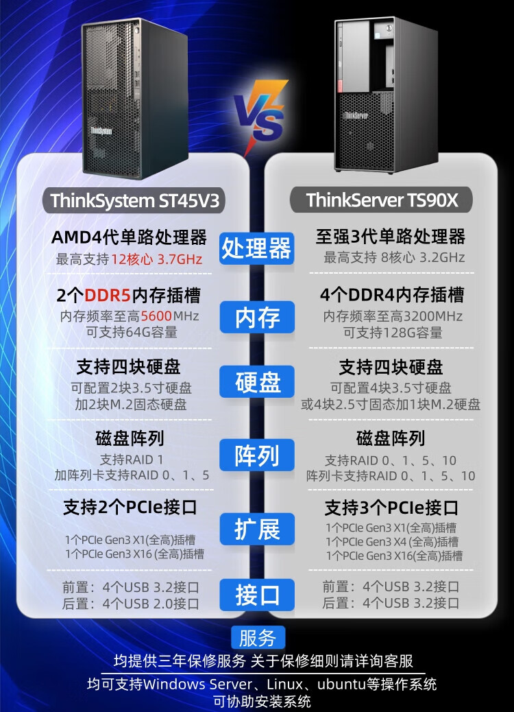 Lenovo (Lenovo) ThinkServer TS90X ST45V3 small tower server host Kingdee UFIDA ERP financial software office computer ST45V3 Xiaolong 4124P quad-core 3.8GHz 16G memory丨2x1T hard drive丨RAID1丨ERP recommended