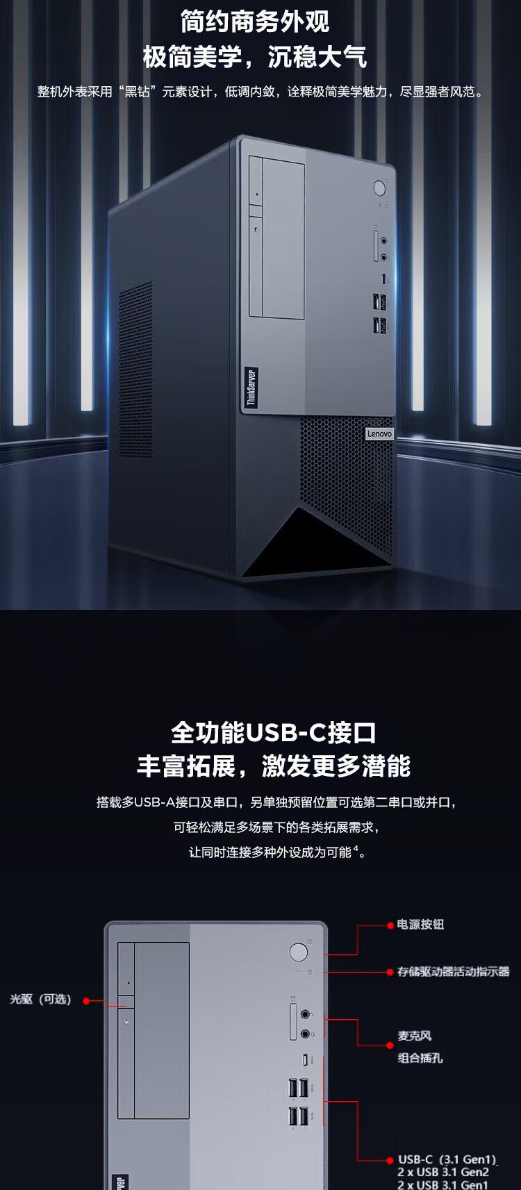 联想ThinkServer T100C V2 小型塔式服务器商用办公家用台式电脑主机 定制 酷睿i5-12400六核十二线程2.5GHz 16G内存丨256G+1T硬盘丨双网口