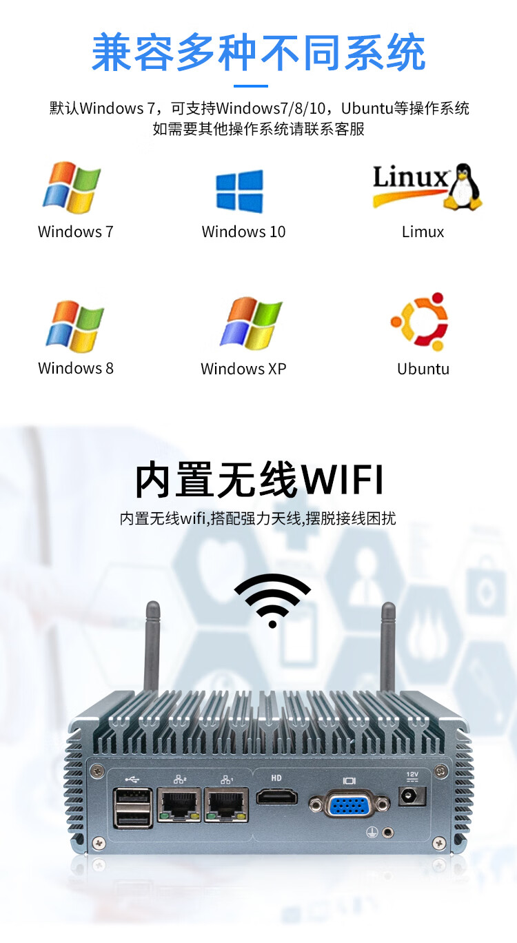 HVAEIPC华微智能微型工控主机迷你电脑主机嵌入式工控机城市智慧工业计算机小型Linux服务器壁挂PC耐高温 【J1900/4G内存/64G硬盘】
