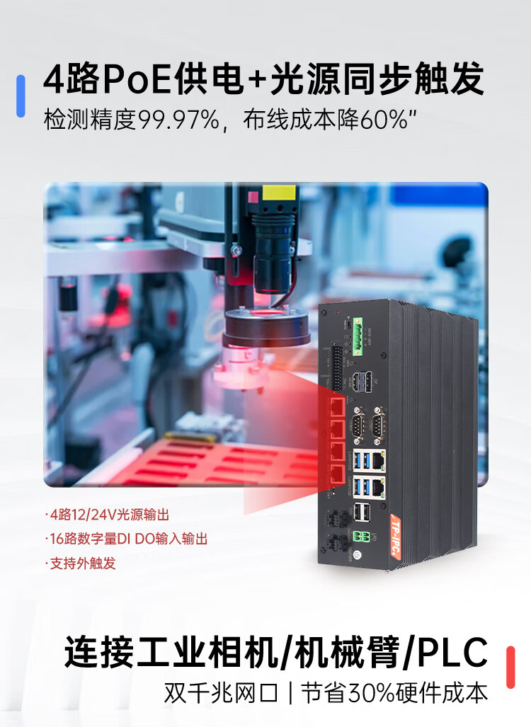 TP-IPC Tuolang Mikro-eingebetteter EtherCAT-Industriecomputer-Host, automatisierte Bildverarbeitungsinspektion, Multi-Netzwerk-Port mit POE, zwei RS485-Ports, kleiner Industrie-Schienencomputer, AC-4PG/16G+512G SSD-Lichtquelle + IO, zusätzliches WLAN (Einzelaufnahme nicht im Lieferumfang enthalten)