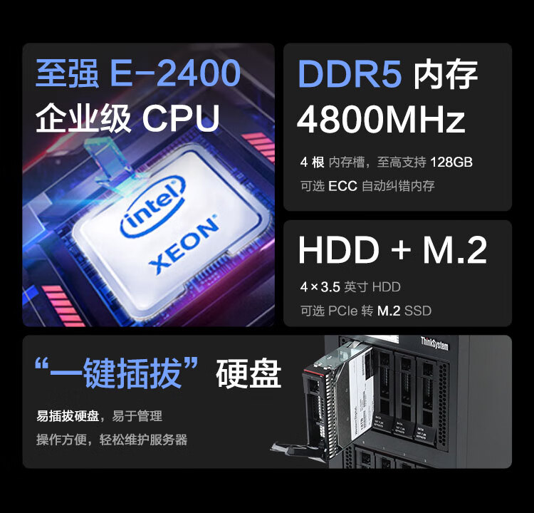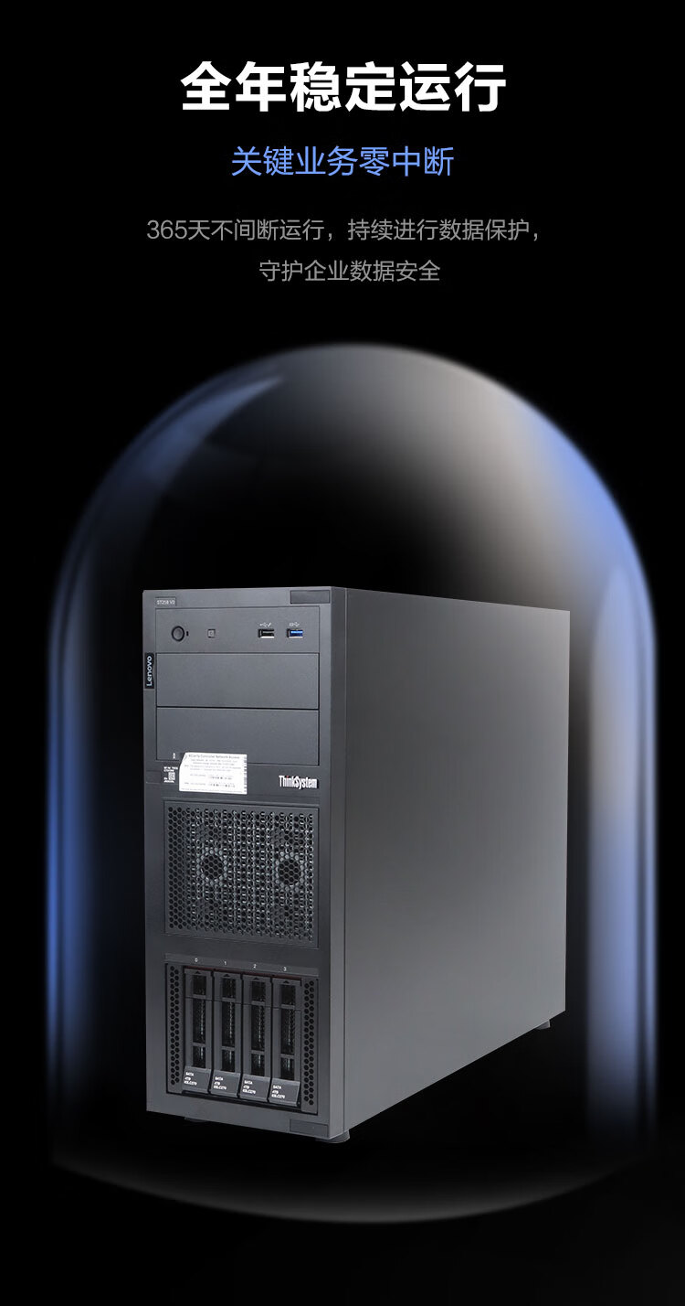 Lenovo (Lenovo) Thinksystem ST258 v3 serveur tour 4U de classe entreprise hôte Xeon E-2488 huit cœurs 3,2-5,6 GHz 64 Go de mémoire 丨2 1,92 T SSD de classe entreprise 丨 RAID1