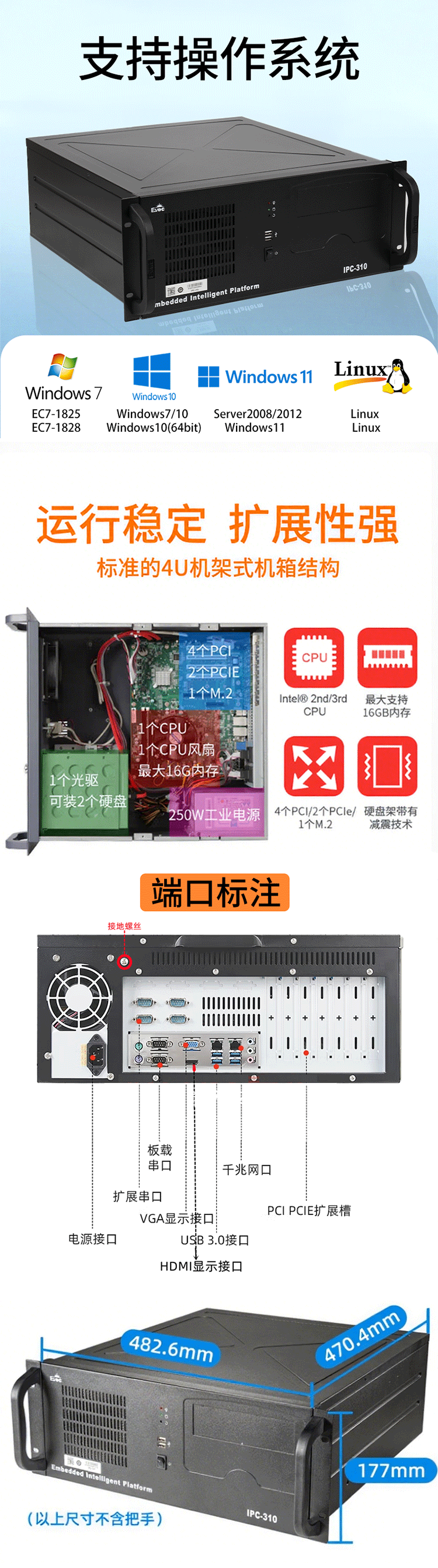 Wusi Industrial Control Machine Research PC-310 710 810 620H Machine Vision Multi-Network Port Serial Port Replacement Research IPC-610L 510 Server IPC-310/EC0-1816 i5/4G/256G Solid State