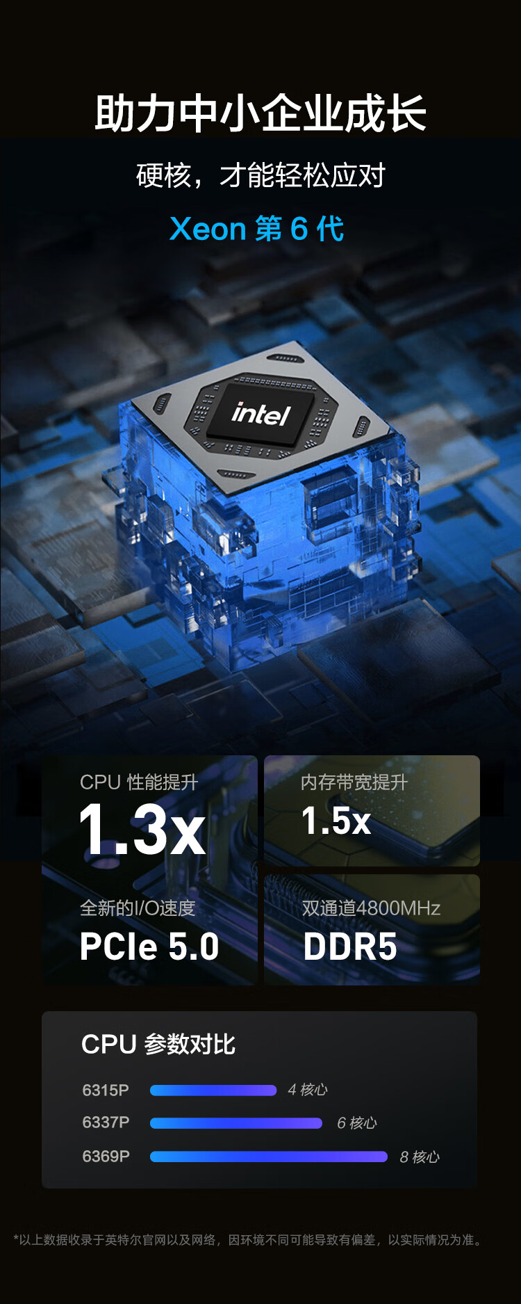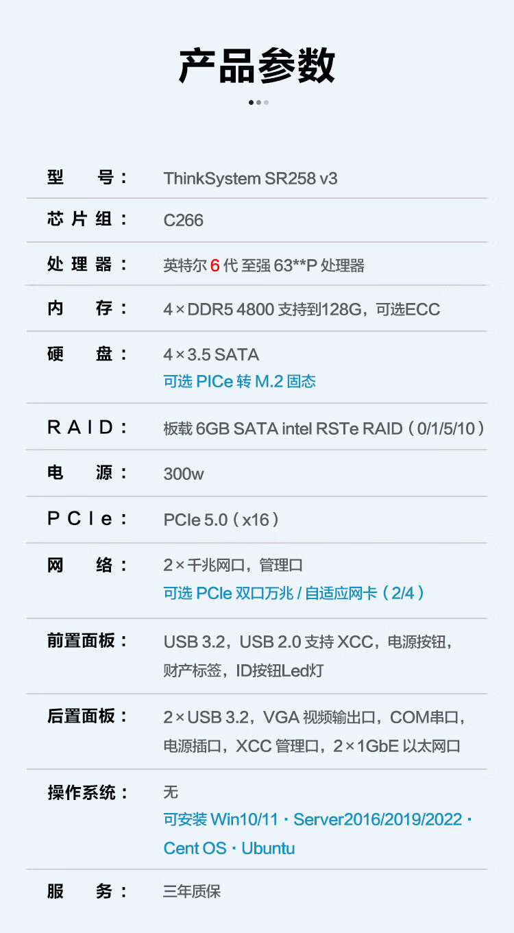 联想(Lenovo)ThinkSystem SR258 v3 至强 6 单路1U机架式服务器主机 Xeon 6315P 四核2.8-5.2GHz 16G内存丨1T M.2高速固态