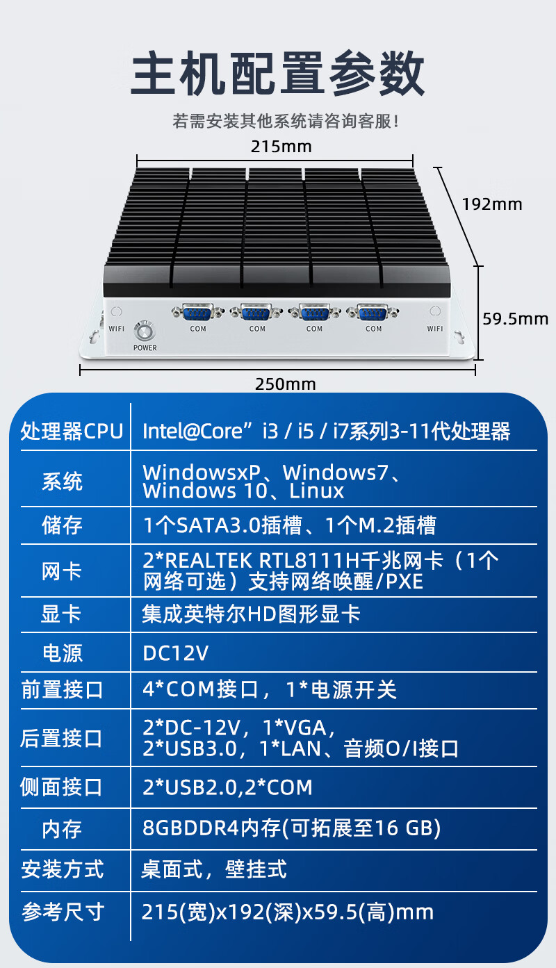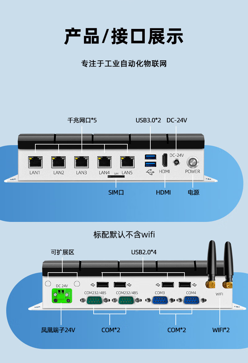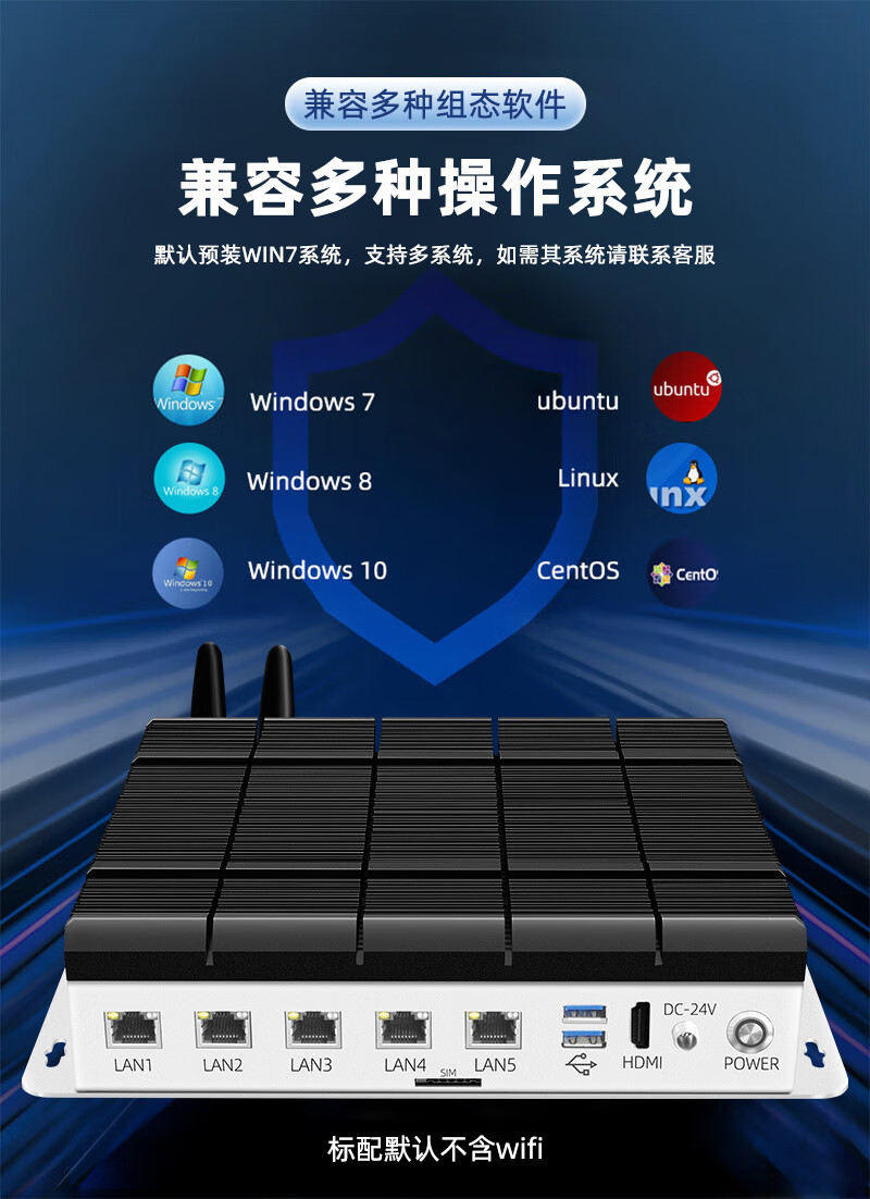 Guangyingke I3/I5/I7-11 Generation Machine Vision dedizierter Multi-Vier- oder Fünf-Netzwerk-Port Industriecomputer Computing lüfterloser Mikrocomputer-Host Multi-Seriell-Port RS232/485/422POE-Schnittstelle kundenspezifisch Gold