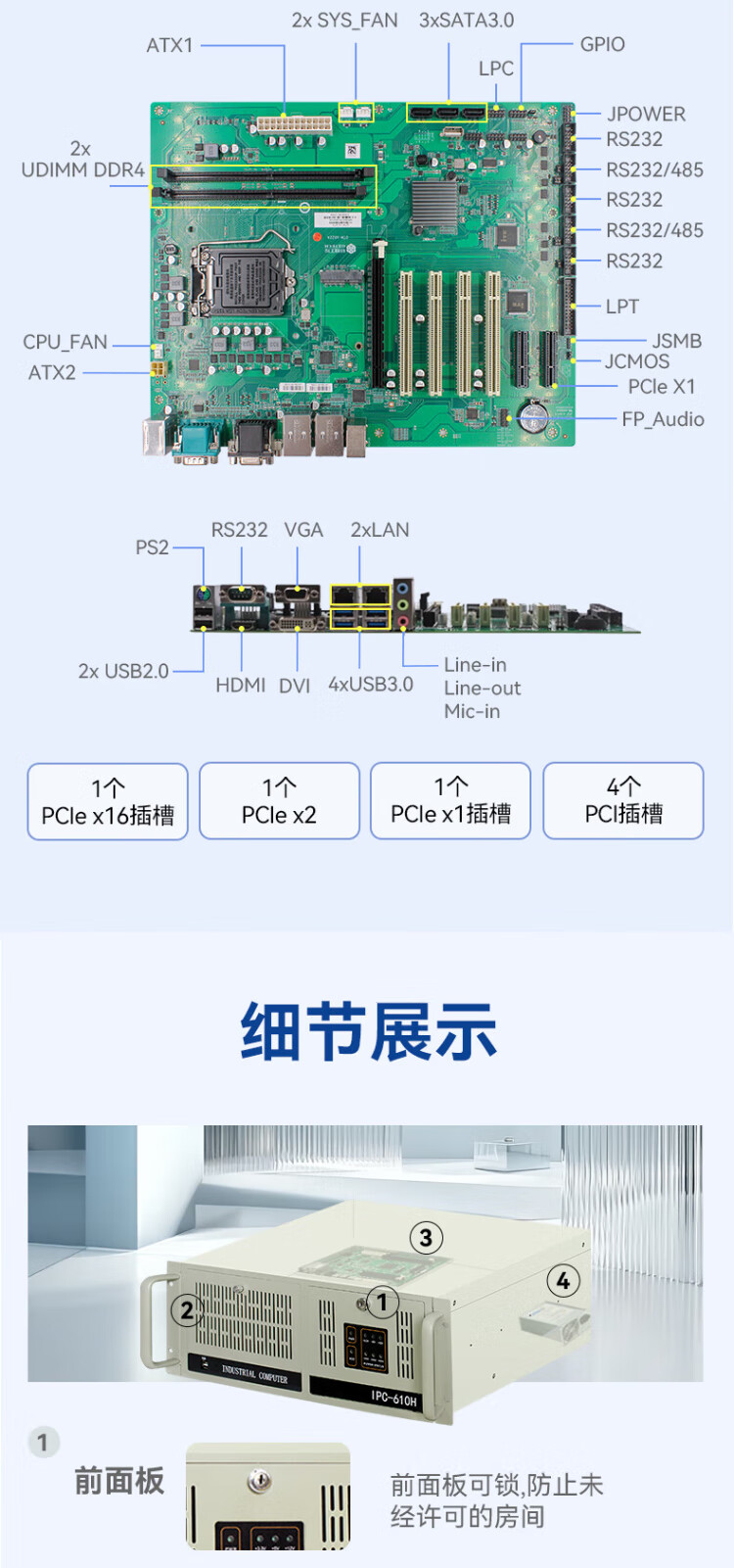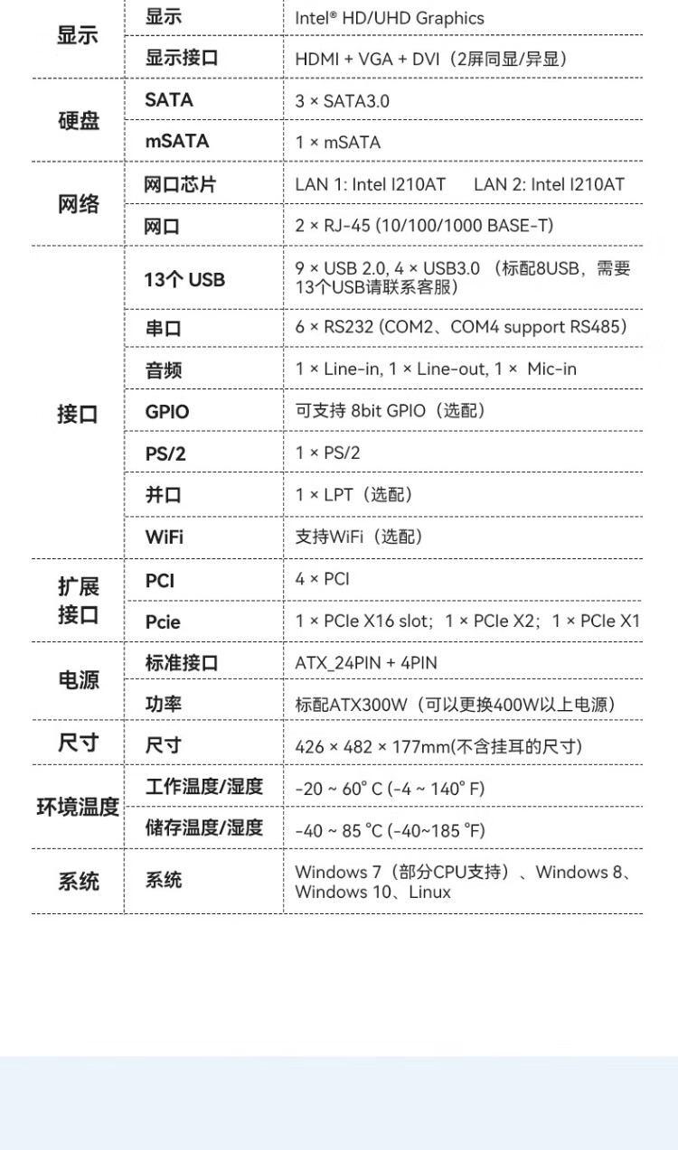 研勤工控机双因特尔I210网口视觉检测工控机支持6串三显4U工控主机 I3-6100 无货配置请和客服沟通发货时间(不含主机)