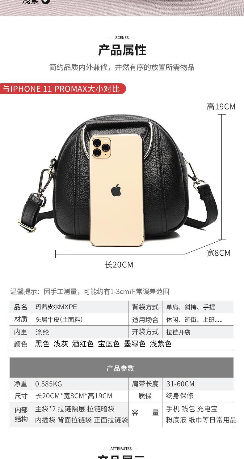 玛茜皮尔  MXPE真皮女包2025新款时尚头层牛皮真皮手提贝壳包洋气单肩斜挎包软皮 浅灰色 无规格