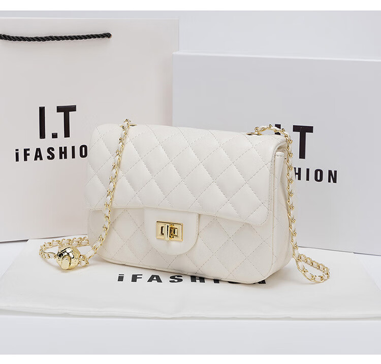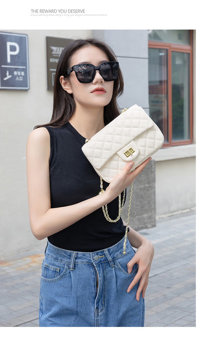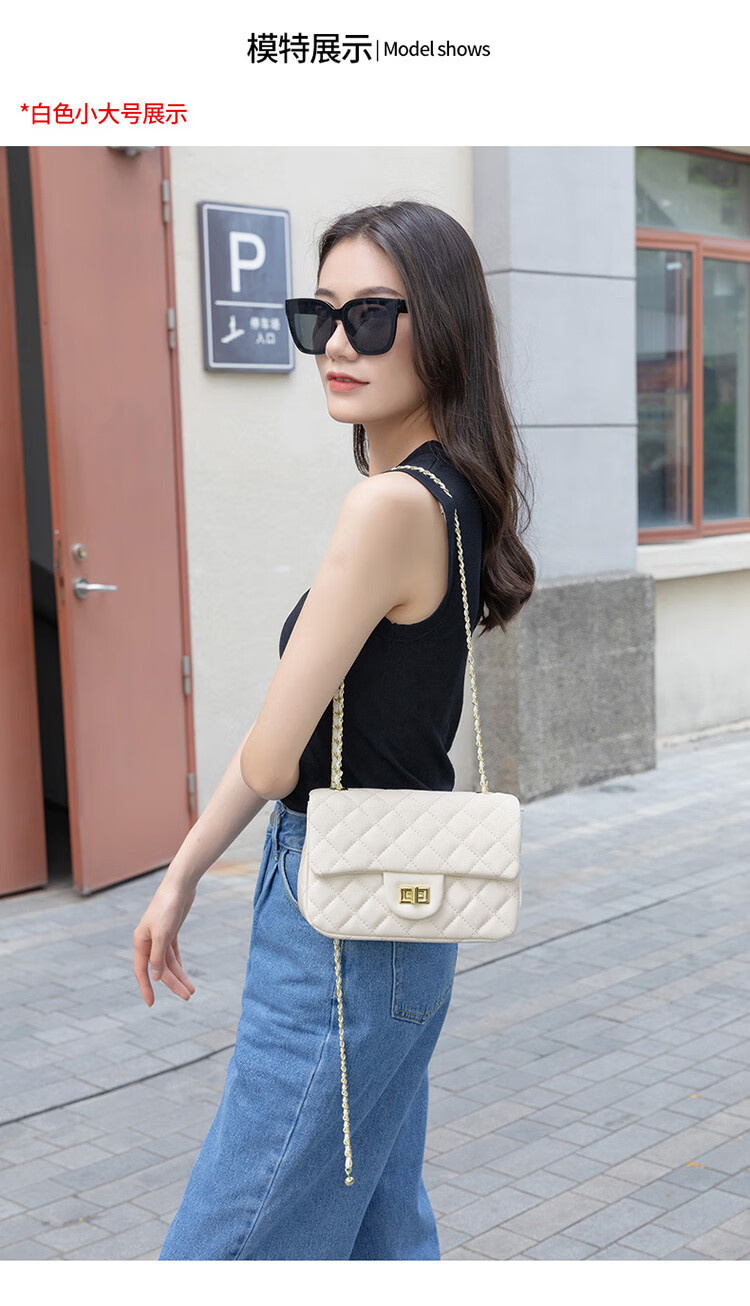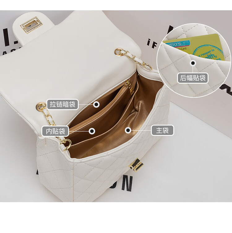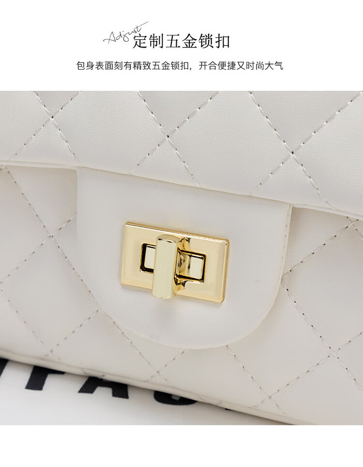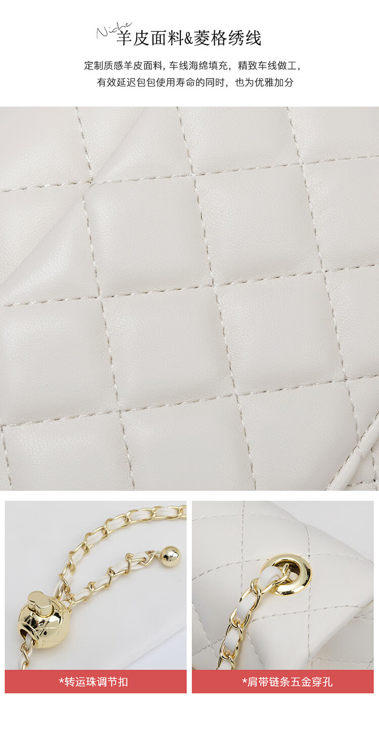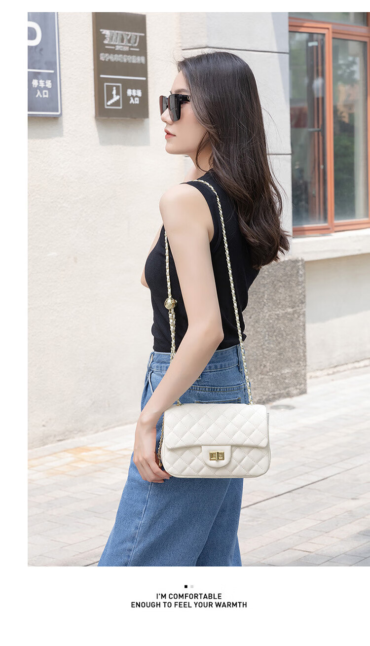 Bian Niao Bolso de cuero genuino de marca de lujo ligero Bolso de mujer Pequeño bolso de cadena de diamantes de piel de oveja Xiangfeng Bolso de hombro de moda Bolso cruzado Blanco de moda con cierre G - Tamaño grande 22 cm