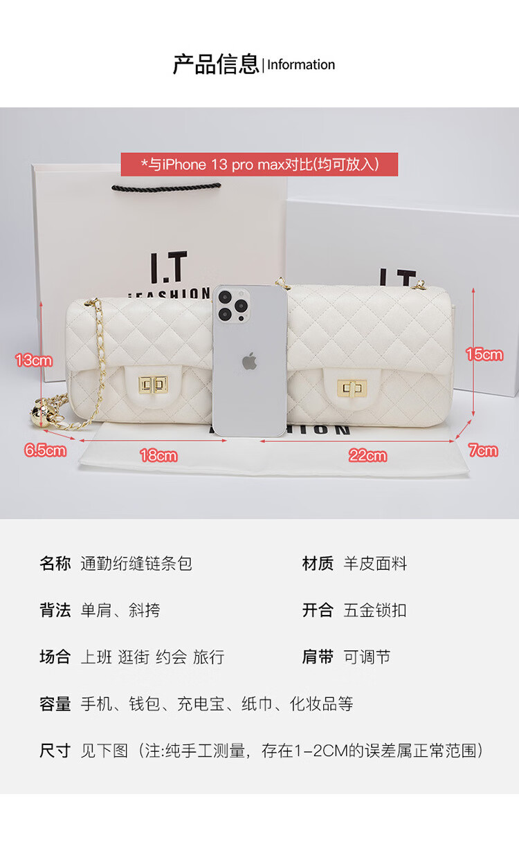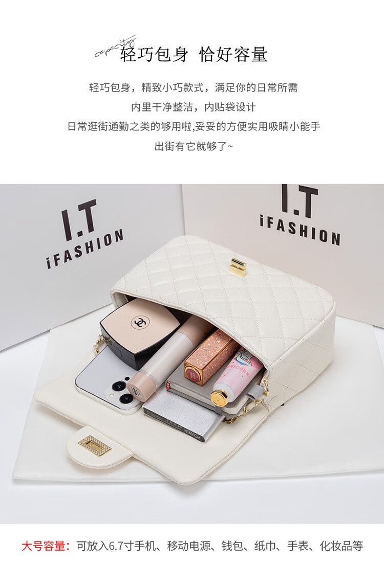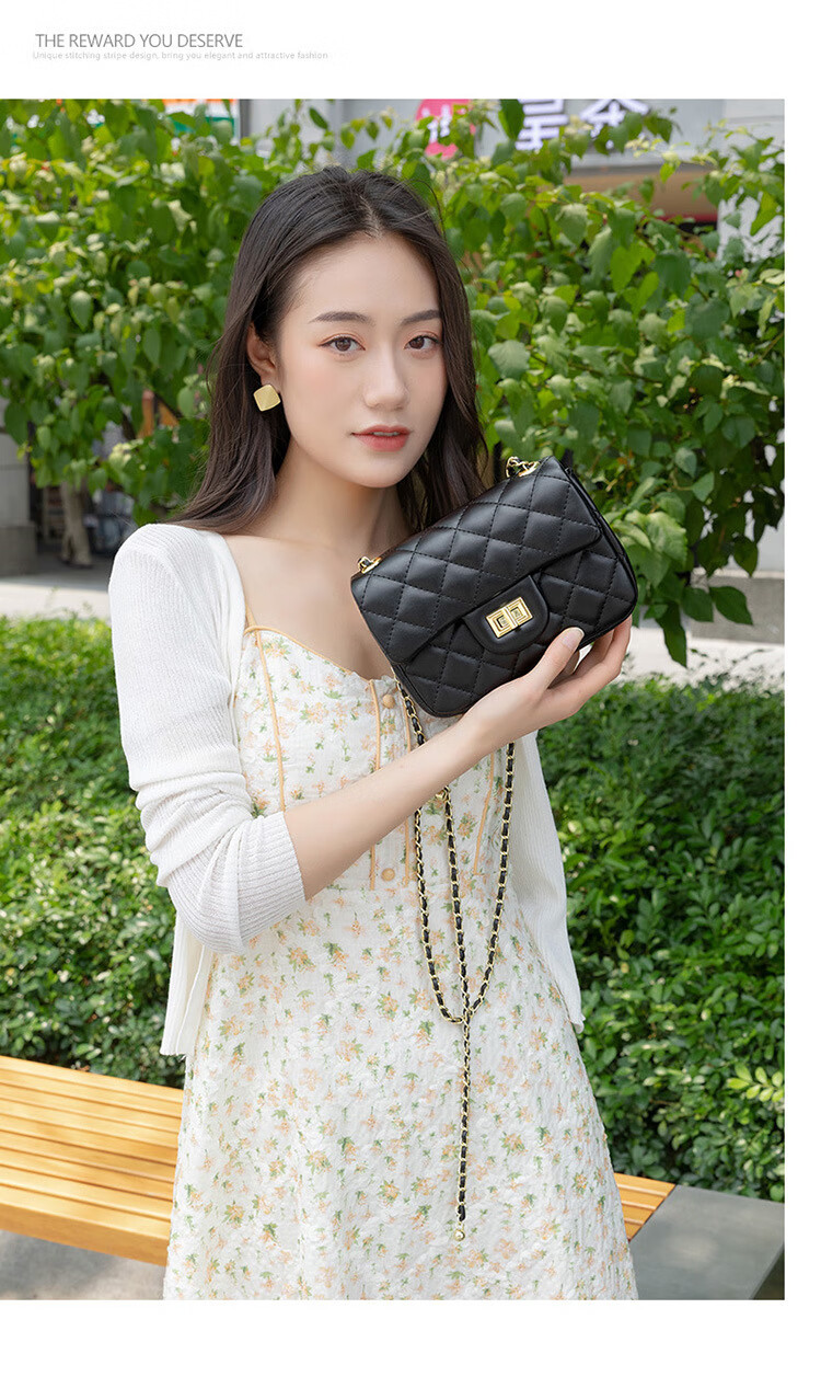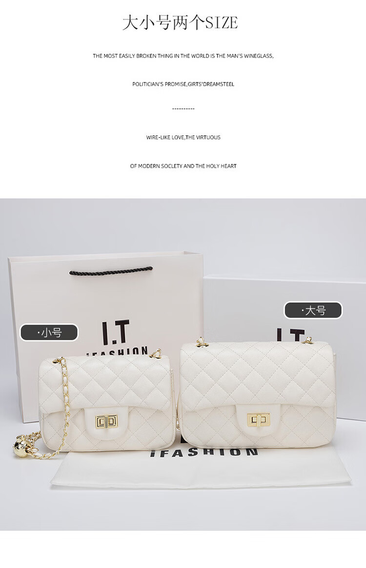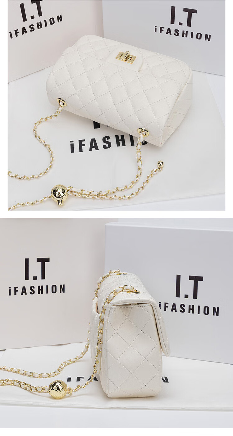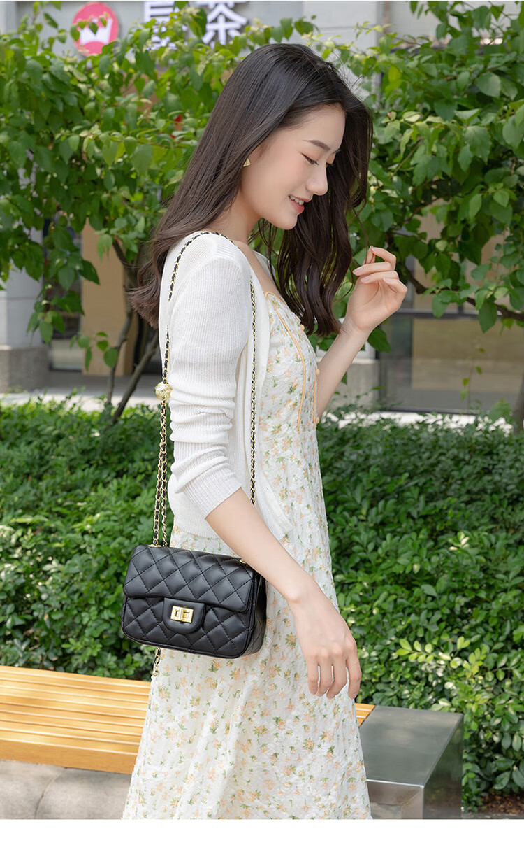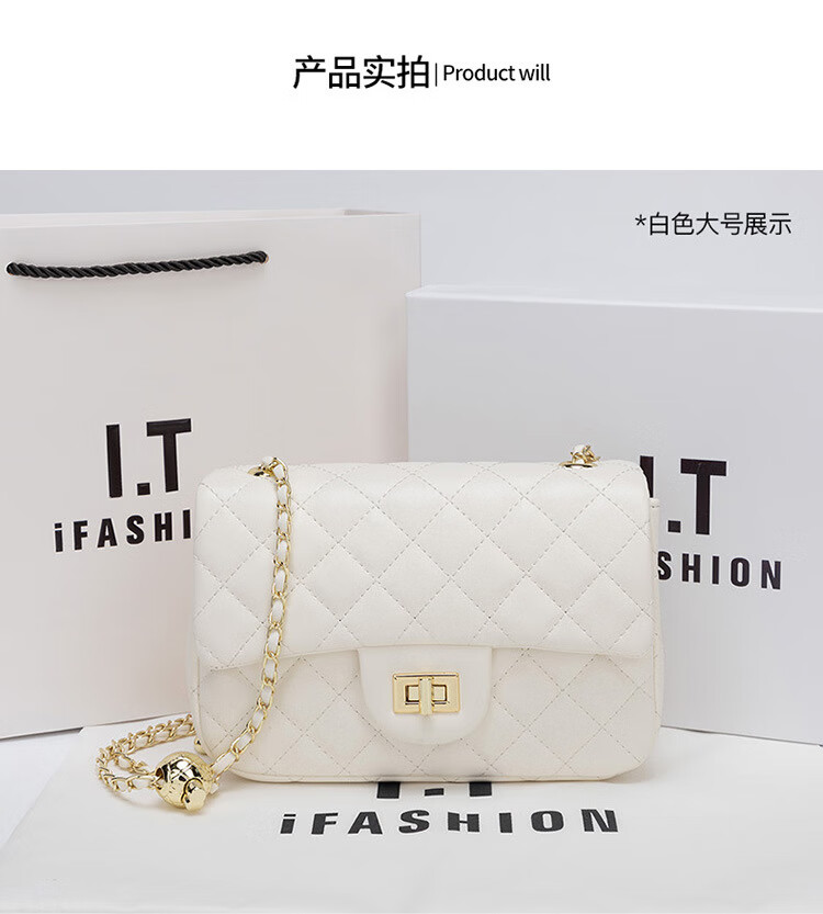 Bian Niao Bolso de cuero genuino de marca de lujo ligero Bolso de mujer Pequeño bolso de cadena de diamantes de piel de oveja Xiangfeng Bolso de hombro de moda Bolso cruzado Blanco de moda con cierre G - Tamaño grande 22 cm