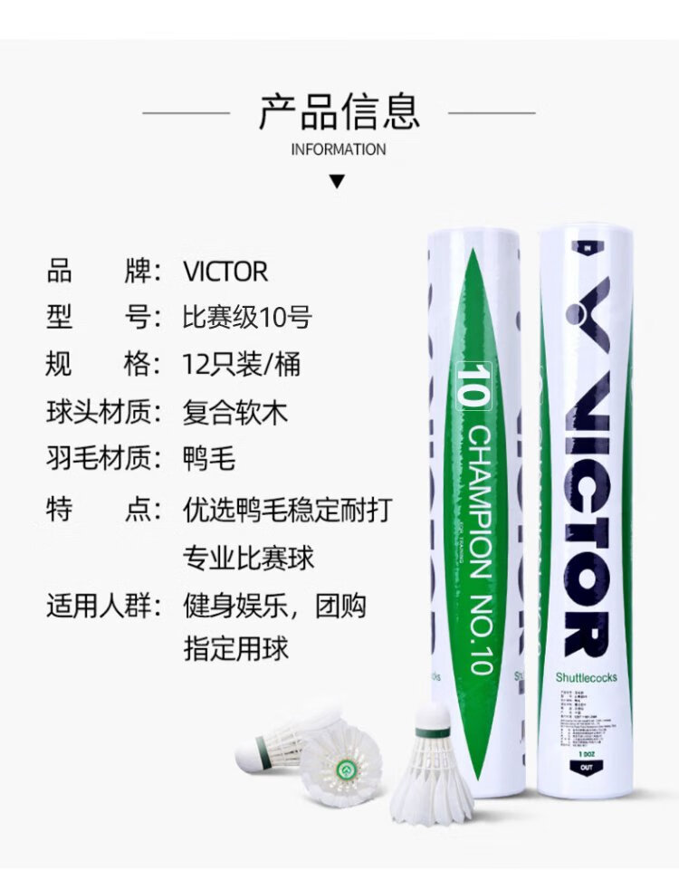 威克多羽毛球比赛10号12只装 鸭毛球耐打
