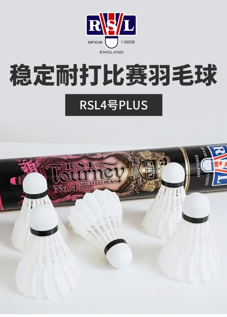 亚狮龙(RSL)羽毛球鸭毛球耐打稳定比赛训练RSL4号PLUS 12只装77速