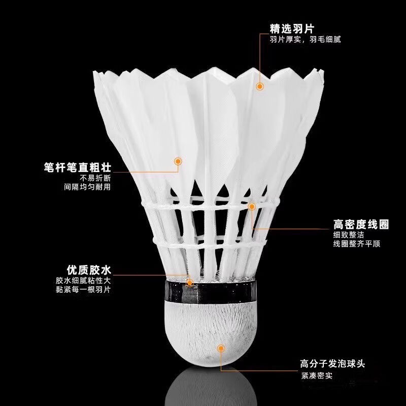 羽毛球正品天然鸭毛12只装耐打鹅毛室内室外比赛防风训练用球6只 【日常训练】无标-升级台纤 1筒 12只装