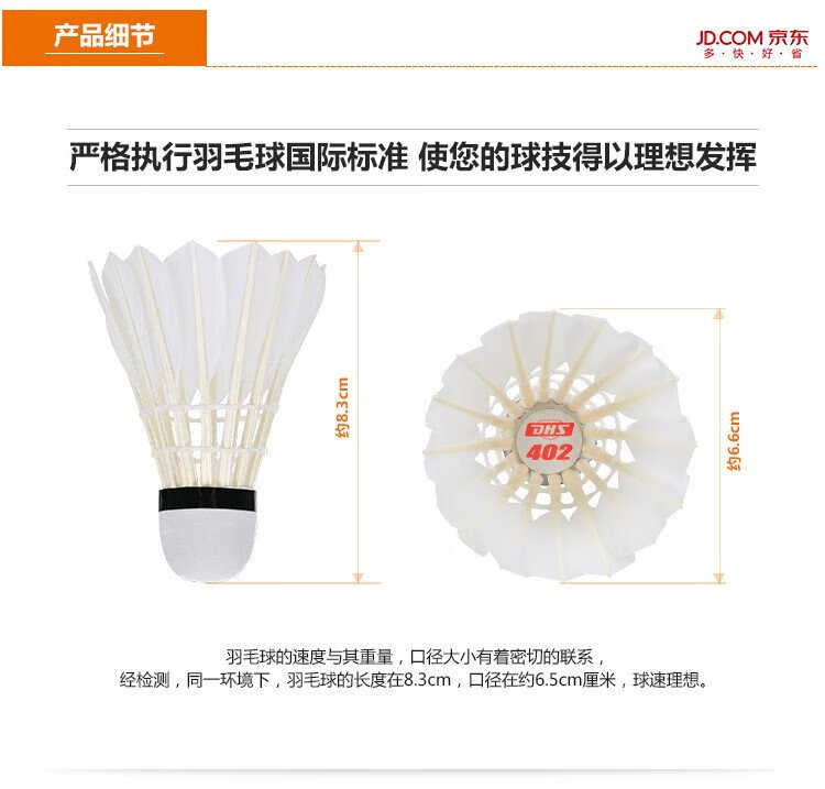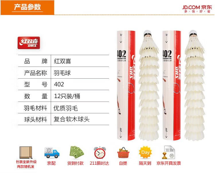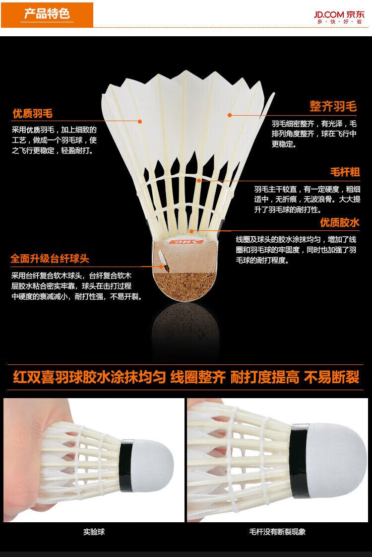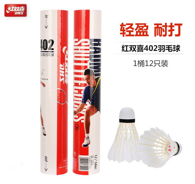 红双喜(DHS)羽毛球402超耐打王训练比赛鹅毛 12只装