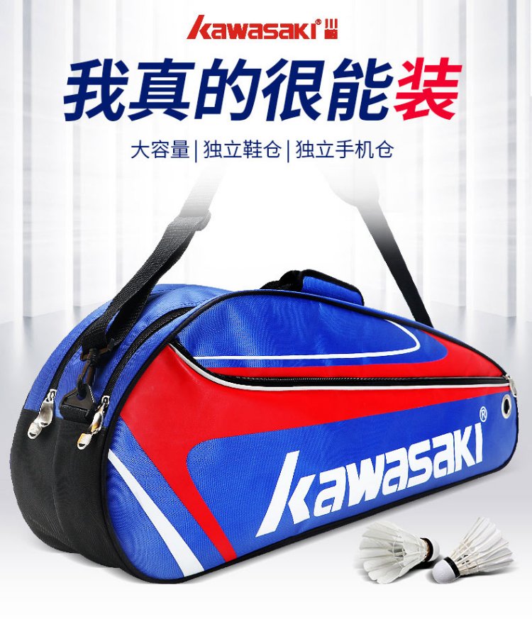 Kawasaki Kawasaki badminton bag shoulder backpack tennis bag men and women independent shoe bag badminton racket bag 8327 navy blue