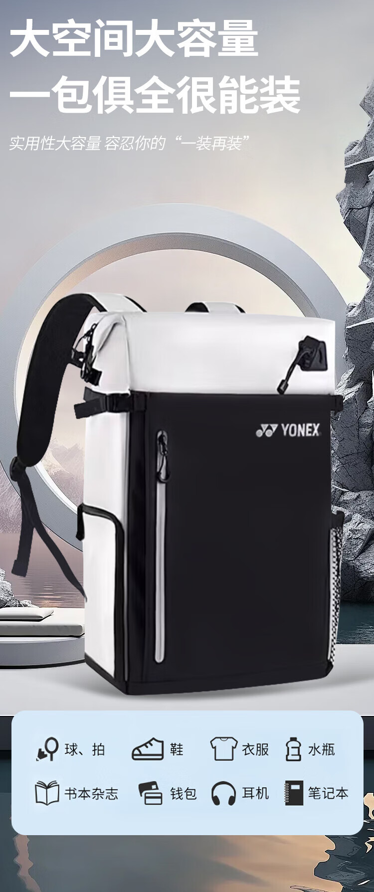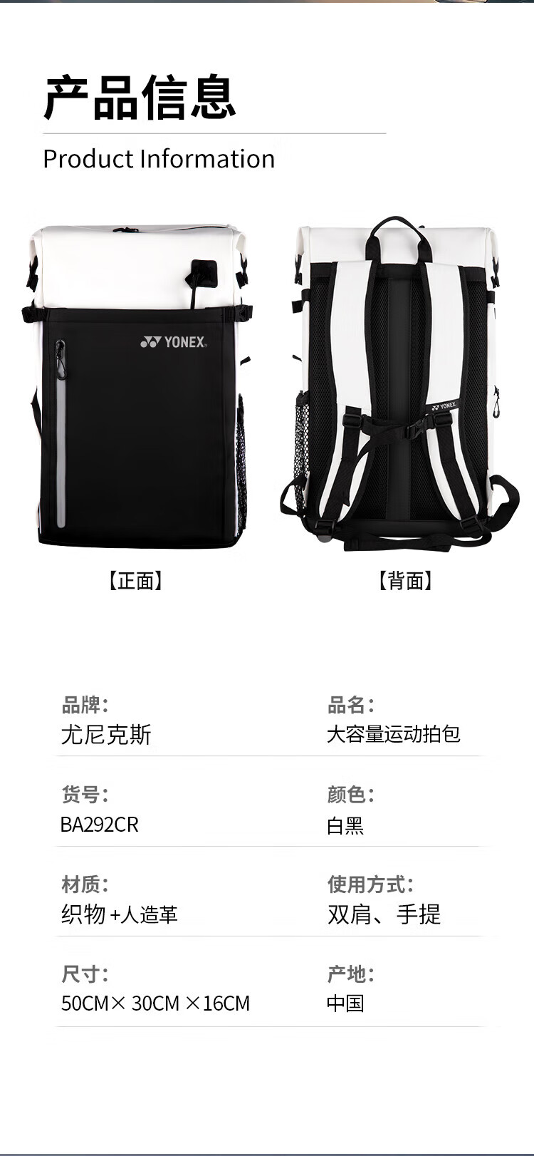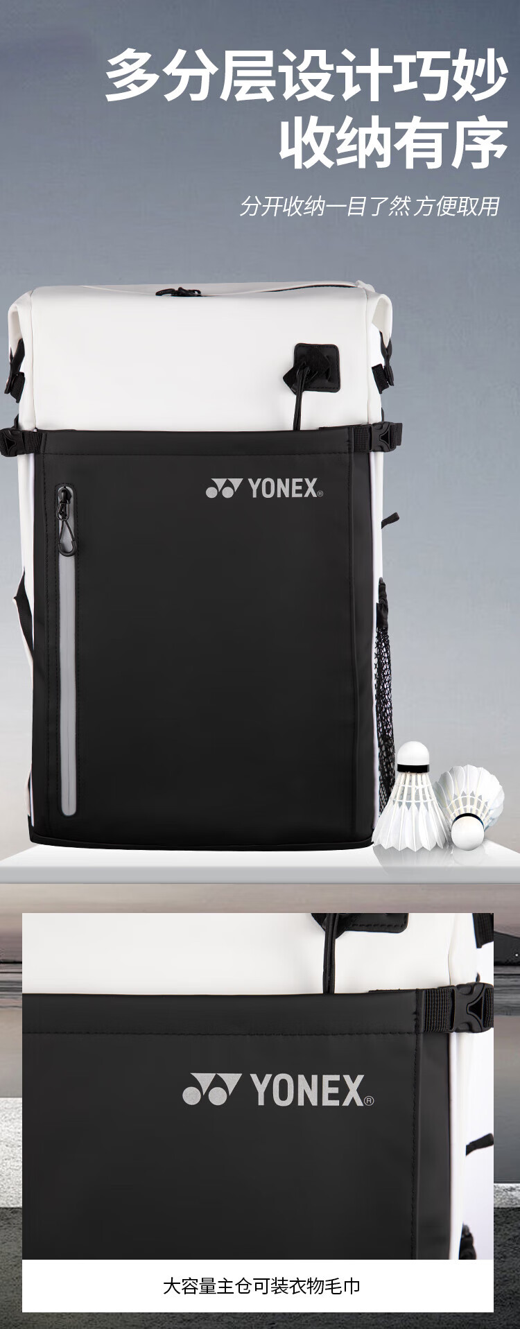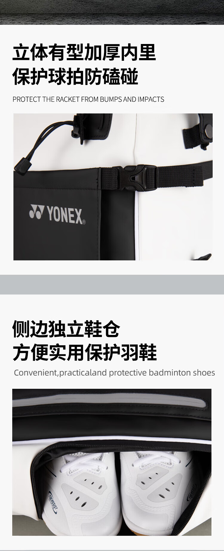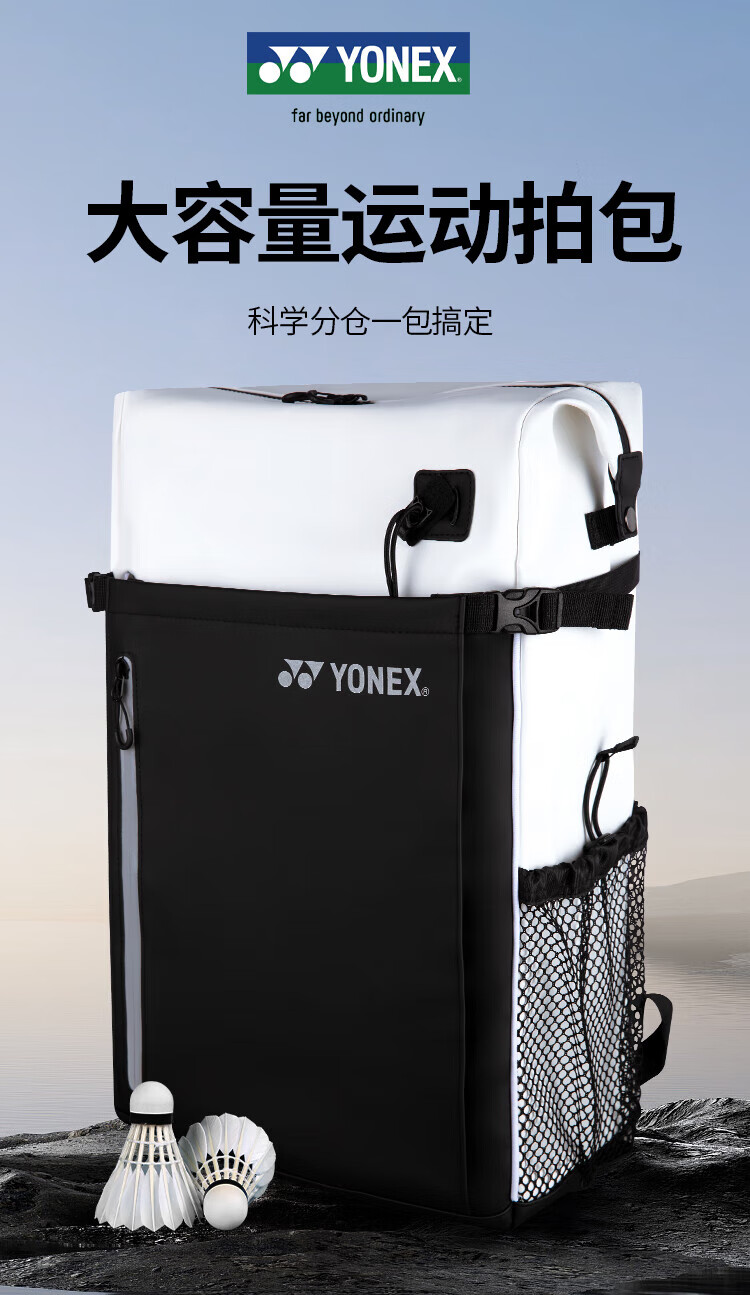 YONEX Yonex Badminton Bag Casual Sports Independent Shoe Storage Large Capacity Backpack BA292CR White/Black