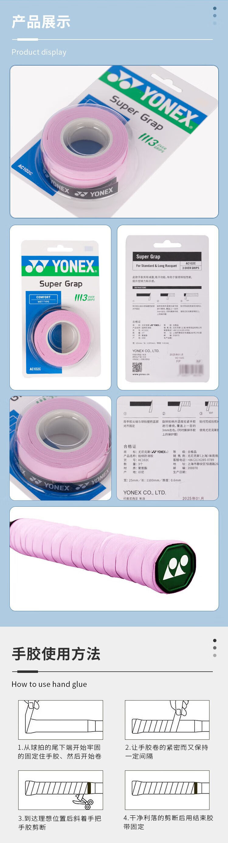 YONEX尤尼克斯羽毛球手胶运动吸汗带握把胶AC-102C-128法国红三条装