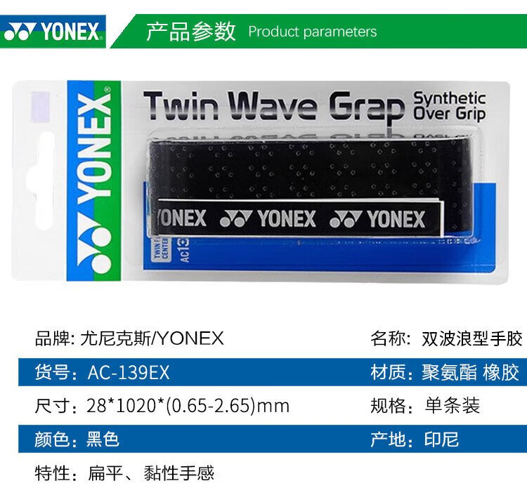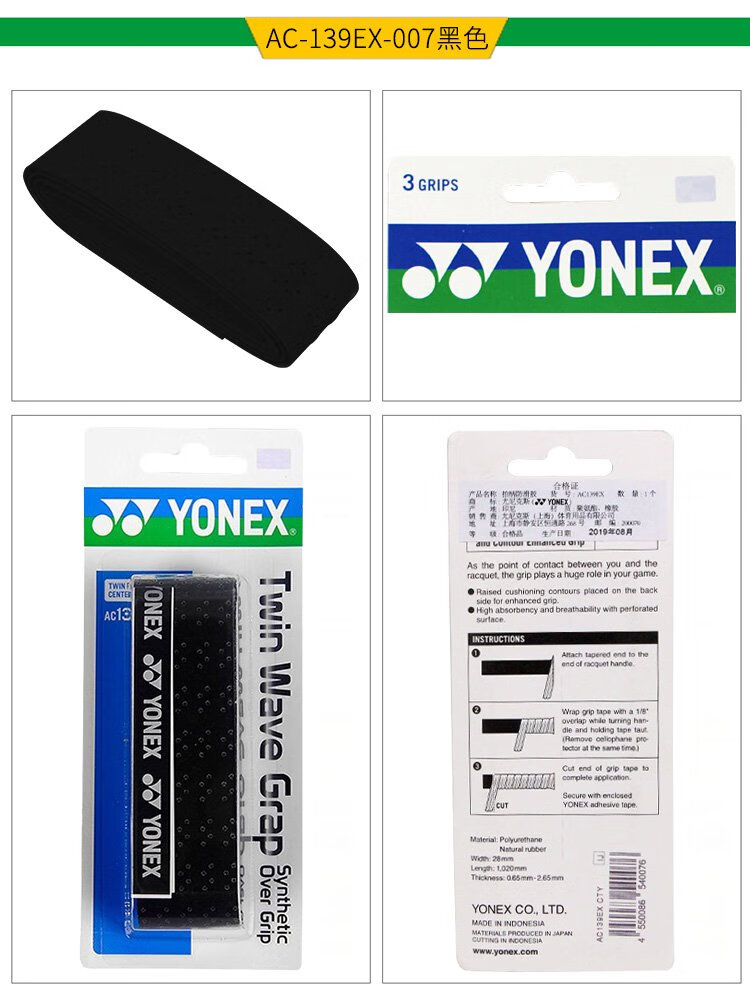 YONEX尤尼克斯羽毛球手胶双波浪型网格龙骨手胶单条AC139EX-007黑色