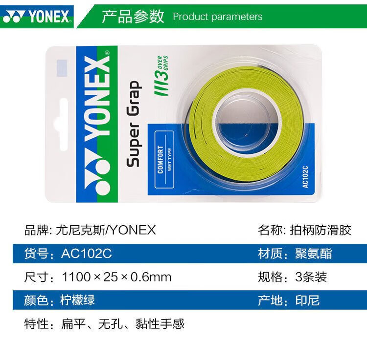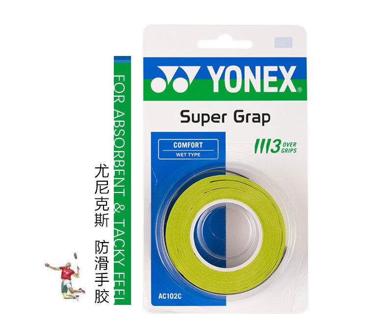 YONEX尤尼克斯羽毛球手胶运动吸汗带握把胶AC-102C-309柠檬绿三条装
