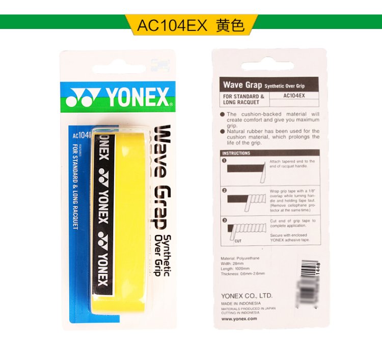 YONEX尤尼克斯羽毛球手胶防滑吸汗带粘性龙骨柄皮AC-104EX-004黄色