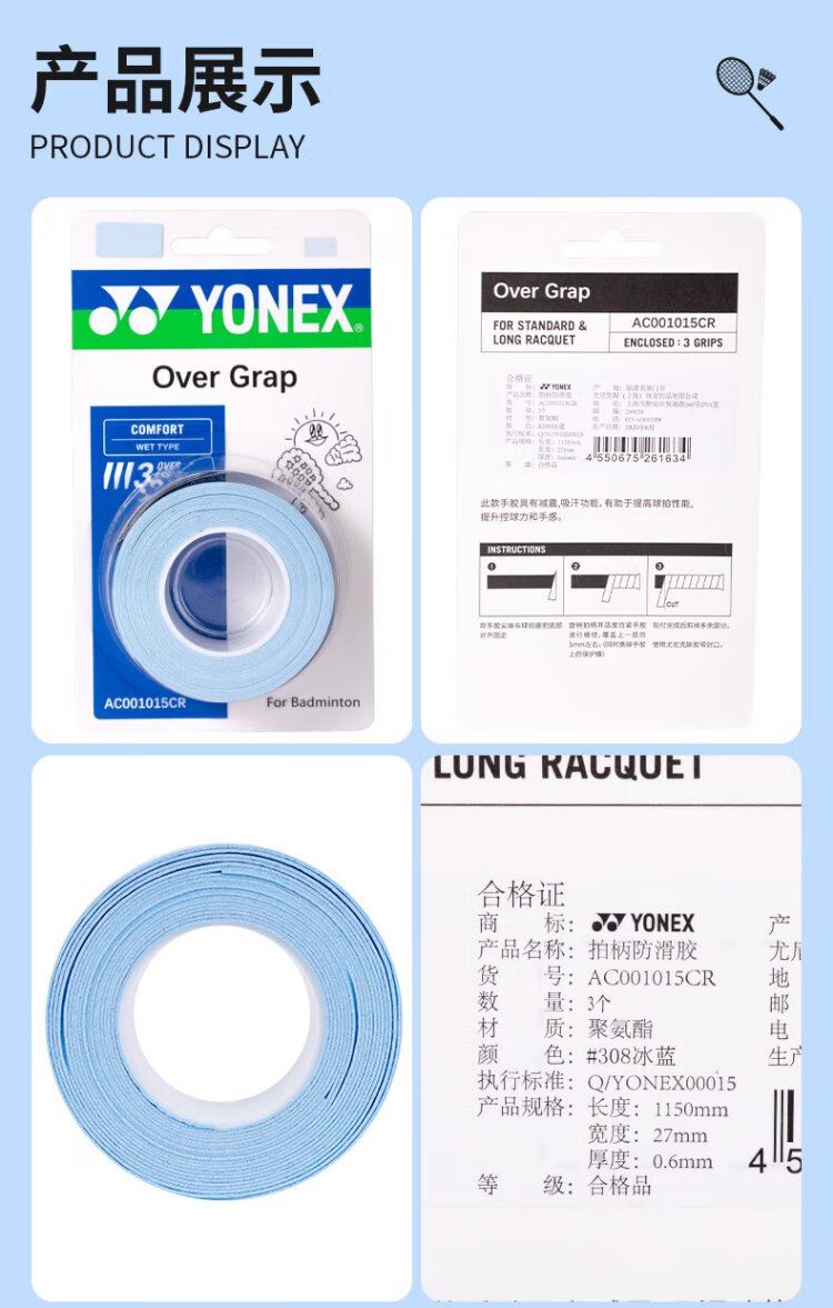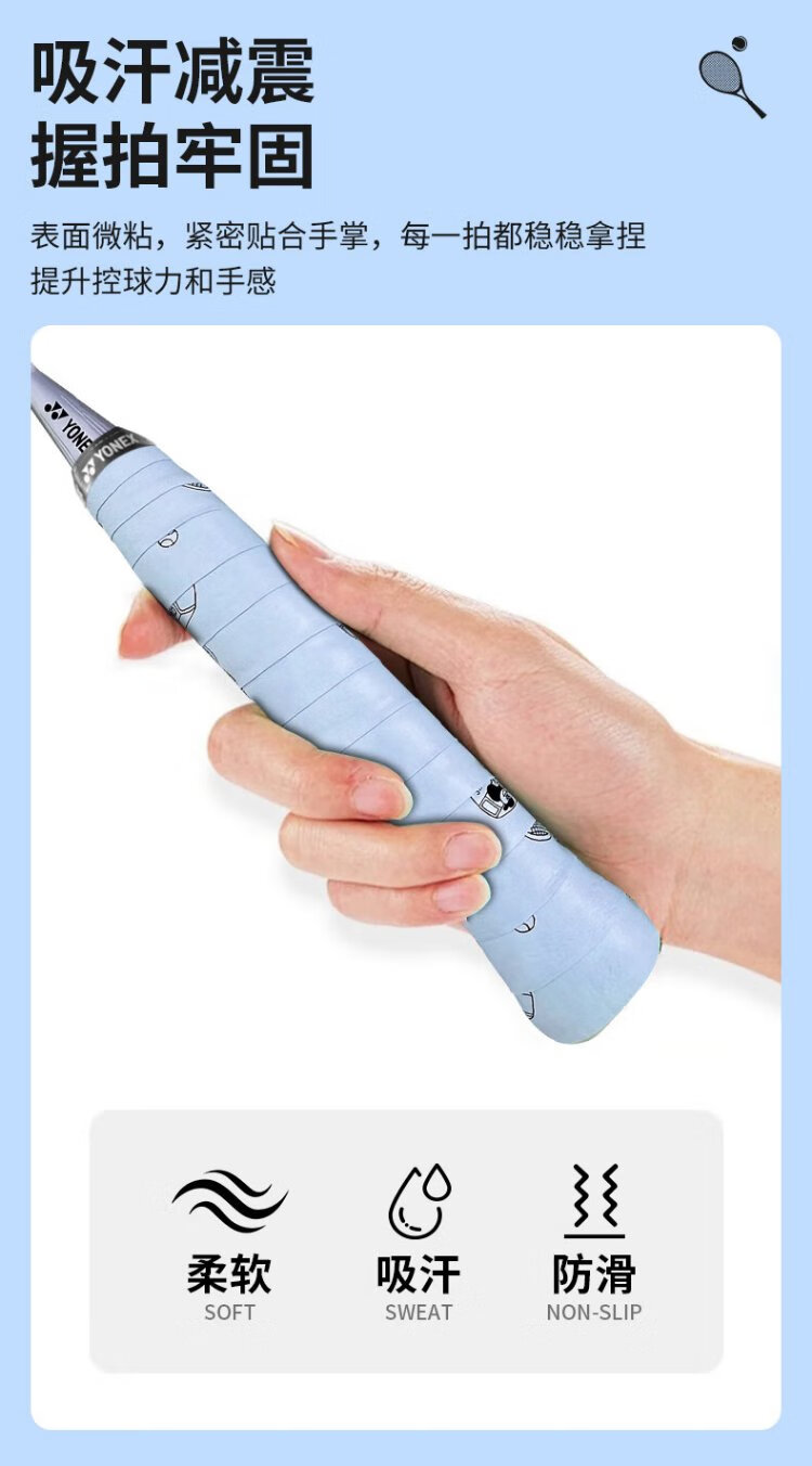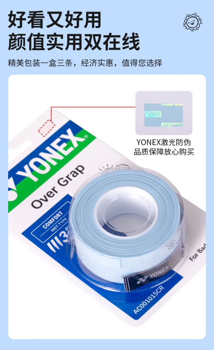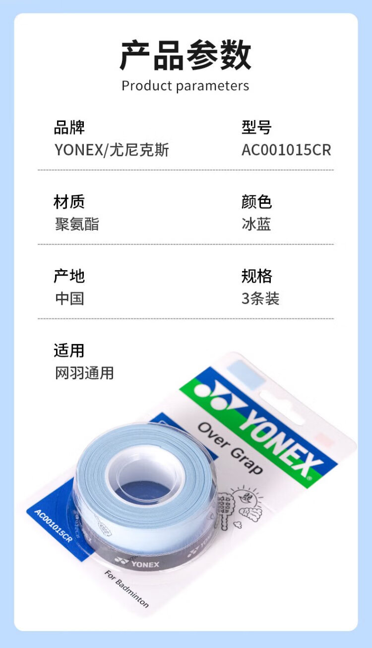 YONEX尤尼克斯羽毛球手胶防滑吸汗时尚卡通AC001015CR冰蓝1盒3条装