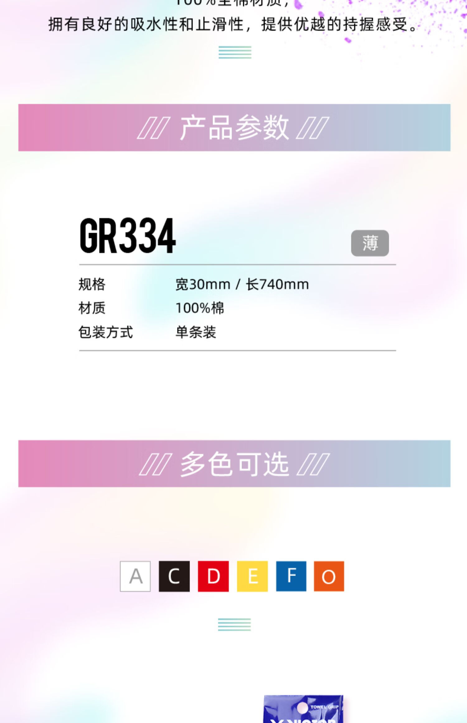 威克多(VICTOR)羽毛球手胶舒适缠带吸汗纯棉带维克多防滑胜利握把布薄款毛巾手胶单条装GR-334 A 白色