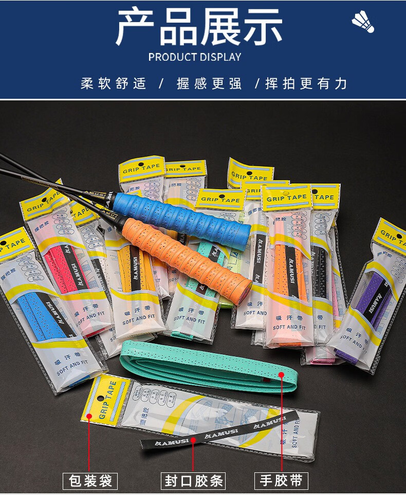 Mukekeke Lot de 5 colles à main pour badminton, colle à main pour quille, bande absorbant la sueur, colle pour serviette, revêtement antidérapant épais, poignée de raquette de tennis perforée, colle à main pour quille colorée