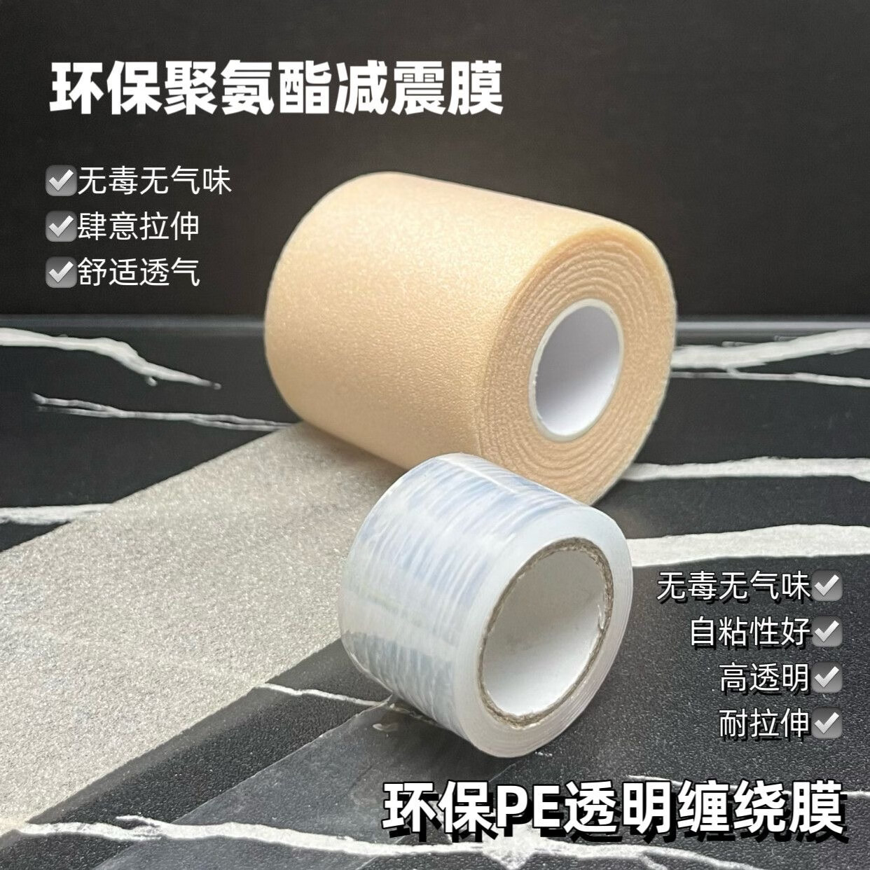 Амортизирующая пленка для бадминтонной ракетки, клей для рук ракетки, пленка-основа, ручка, ручка, амортизирующая пленка, буферная пленка, противоударная пленка, пленка-основа, амортизирующая пленка телесного цвета 10 м + пленка-основа 25 м