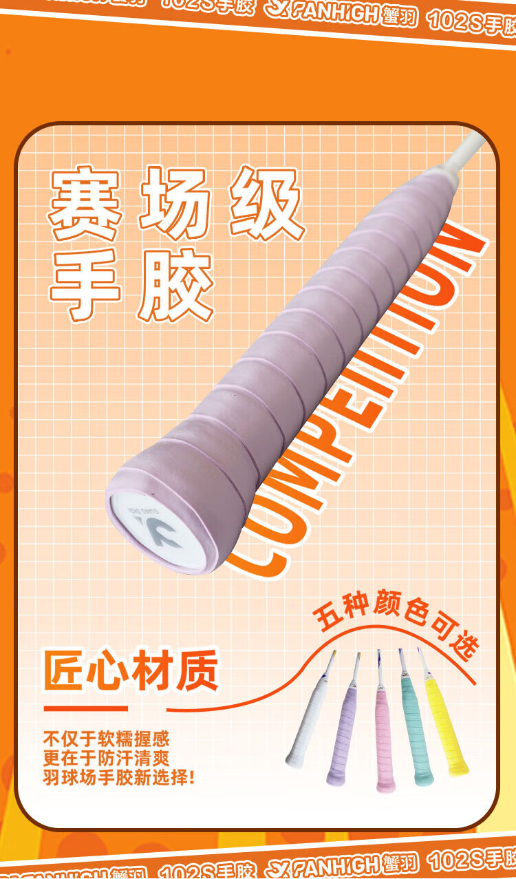 Crab feather badminton hand glue 102S anti-slip, sweat-absorbing, shock-absorbing, wear-resistant sticky racket, fishing rod handle supplies 5 packs per card, milk white 5 packs