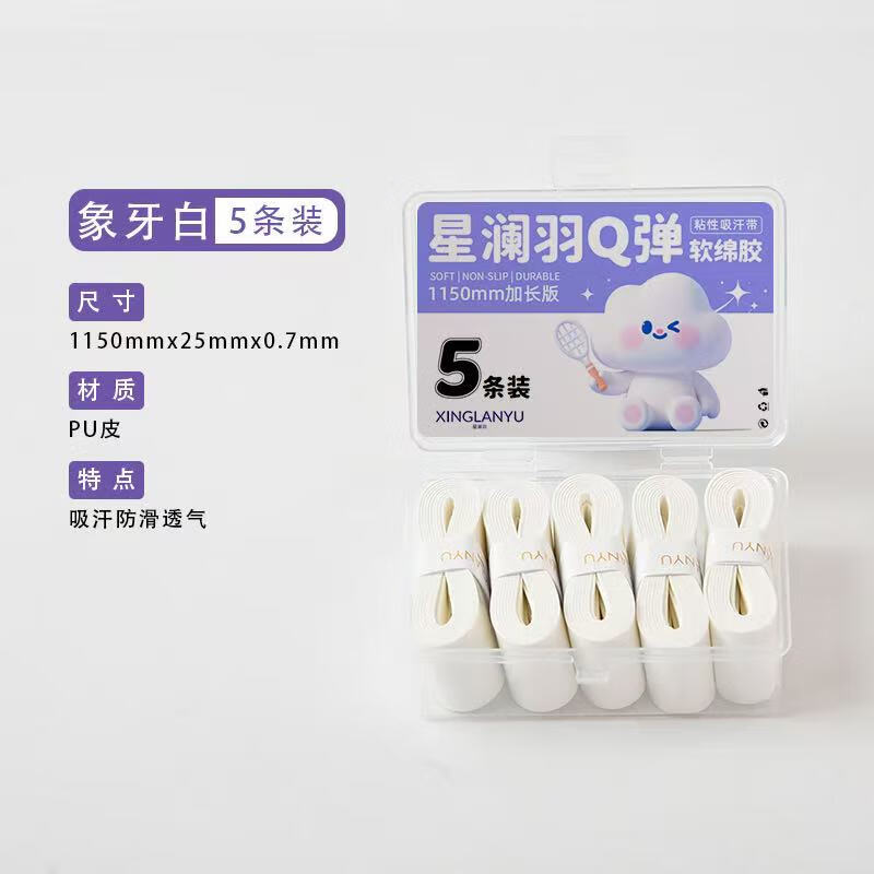 星澜羽超软001羽毛球拍手胶防滑吸汗缠绕带握把绑带糯糯胶专业007 星澜羽超软001【白色】五条装