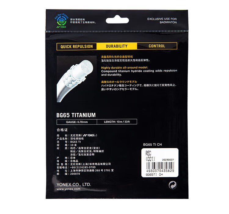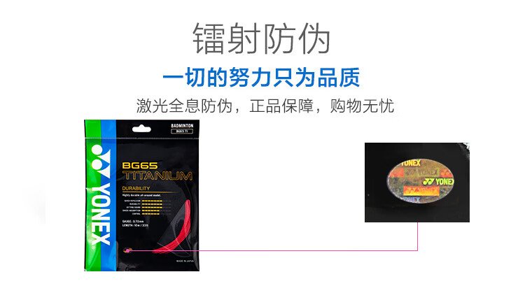 YONEX尤尼克斯羽毛球线耐打型高张力比赛训练力量型BG65Ti-001红色
