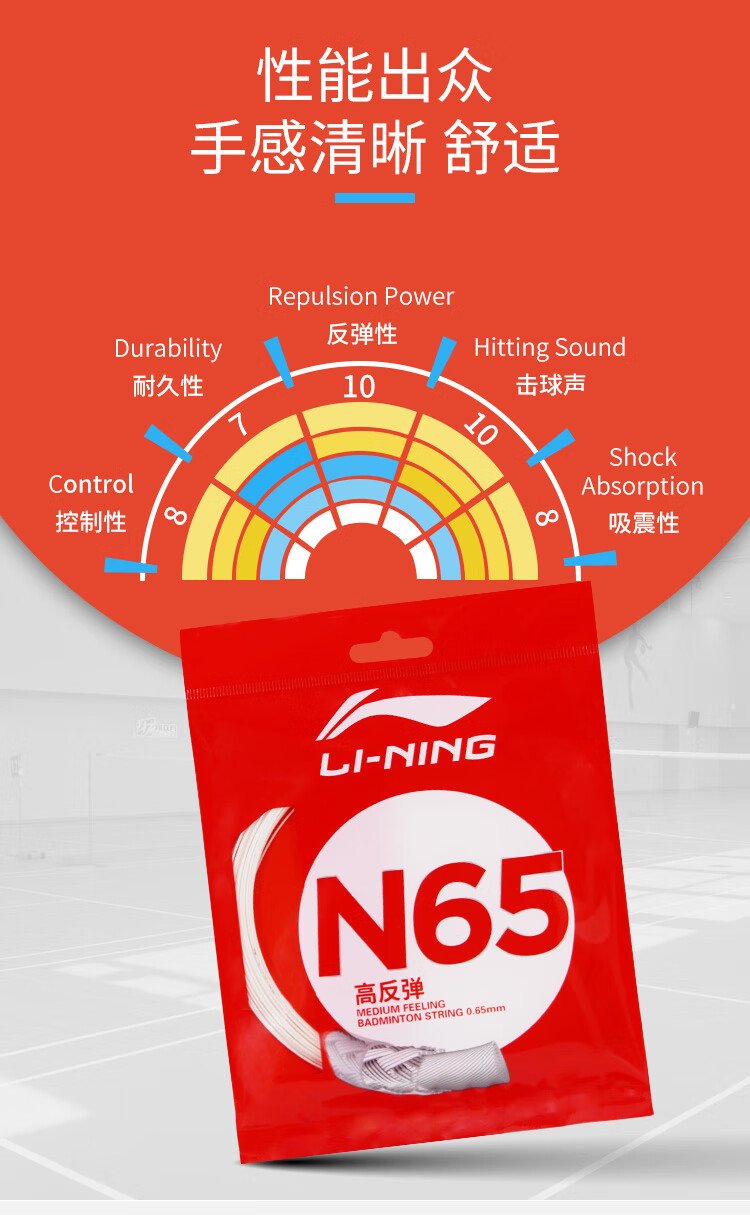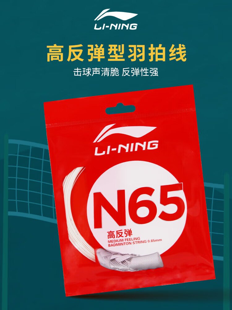 李宁(LI-NING)羽毛球线N65高反弹型羽毛球线专用网线击球声音清脆米白色
