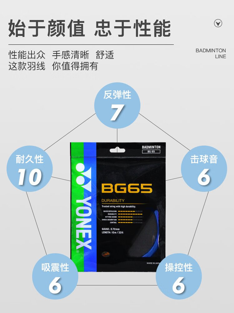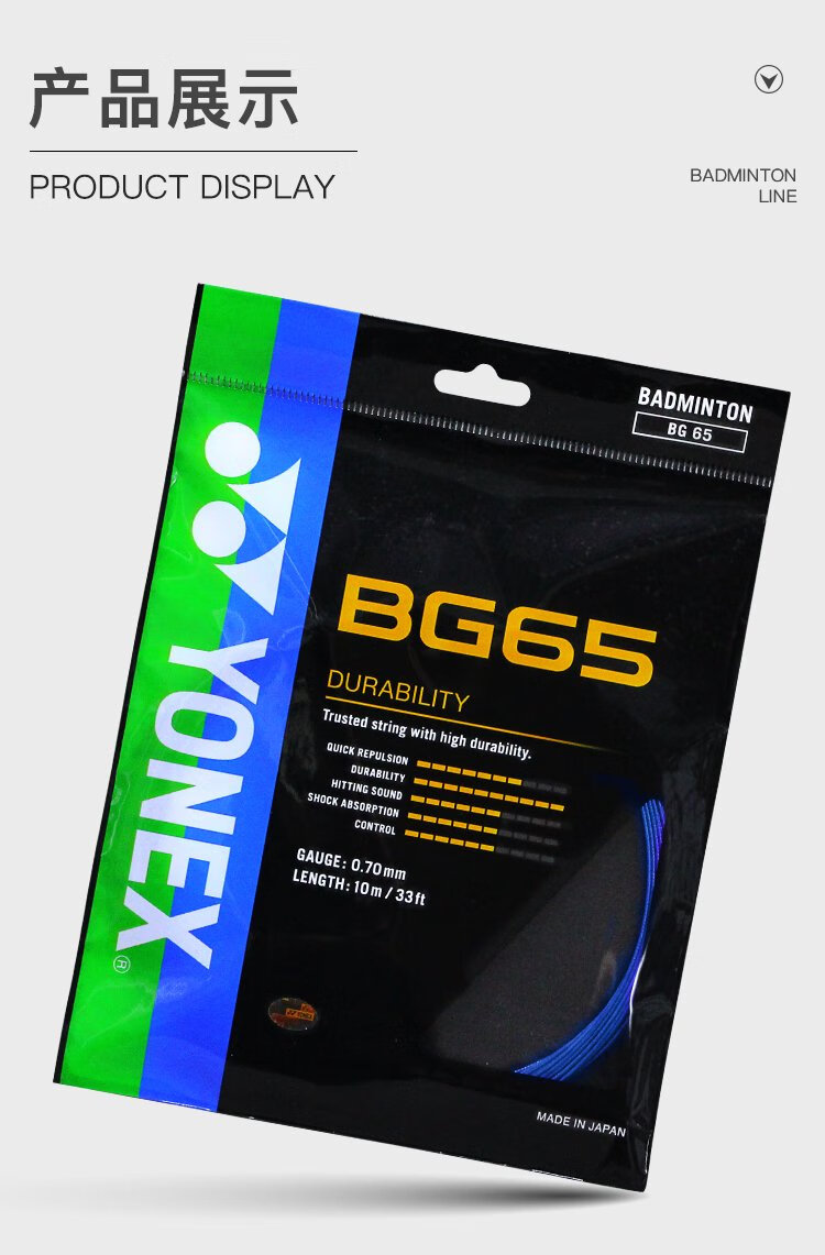 YONEX尤尼克斯羽毛球线yy耐打型专业羽毛球线BG65品蓝单扎装