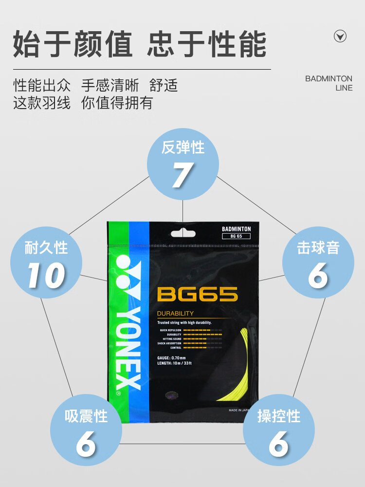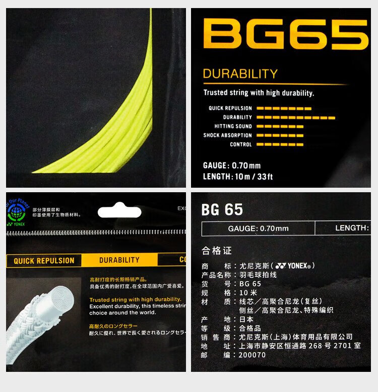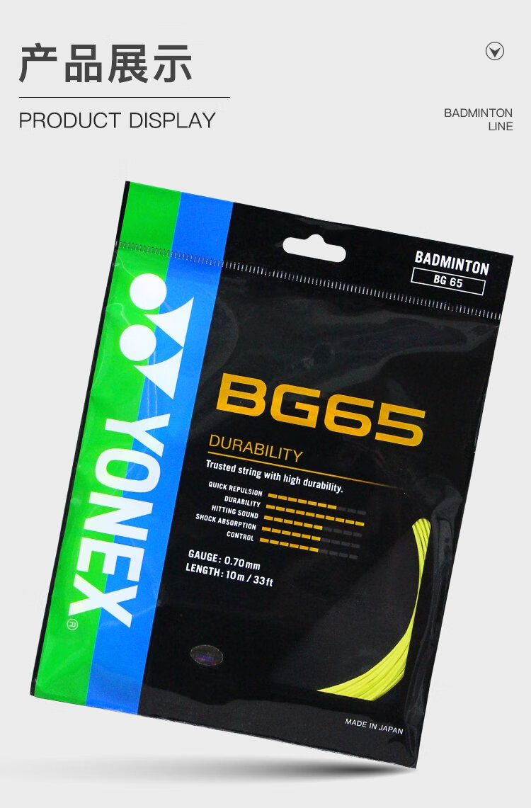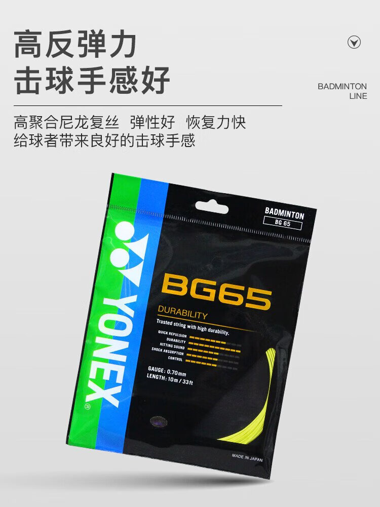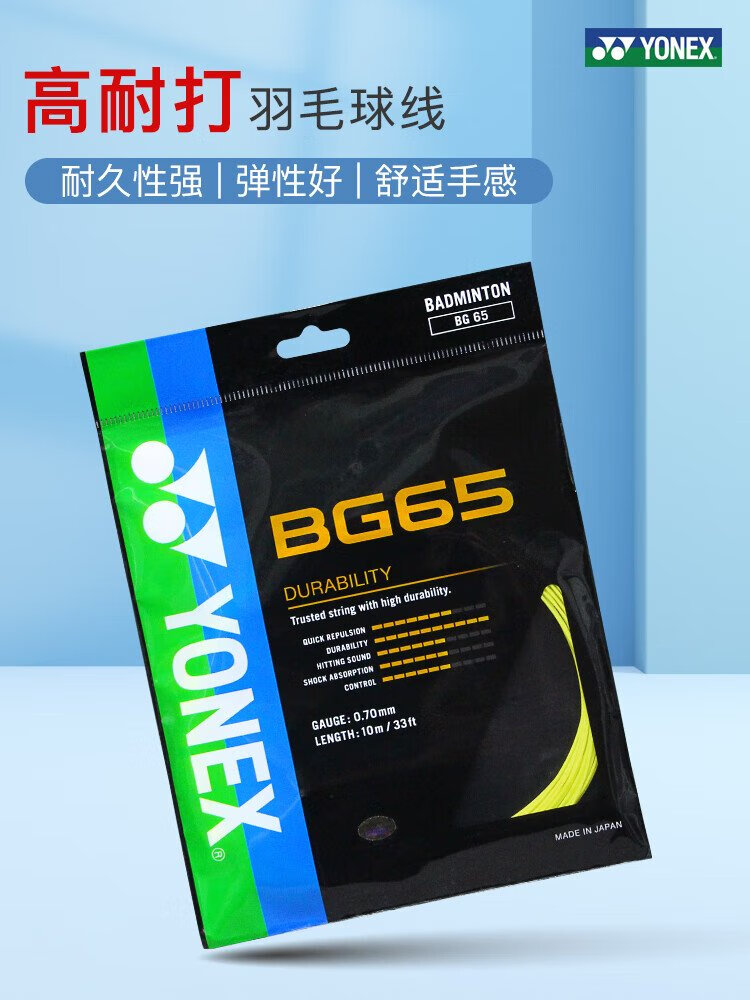 YONEX尤尼克斯羽毛球线yy耐打型专业羽毛球线BG65黄色单扎装