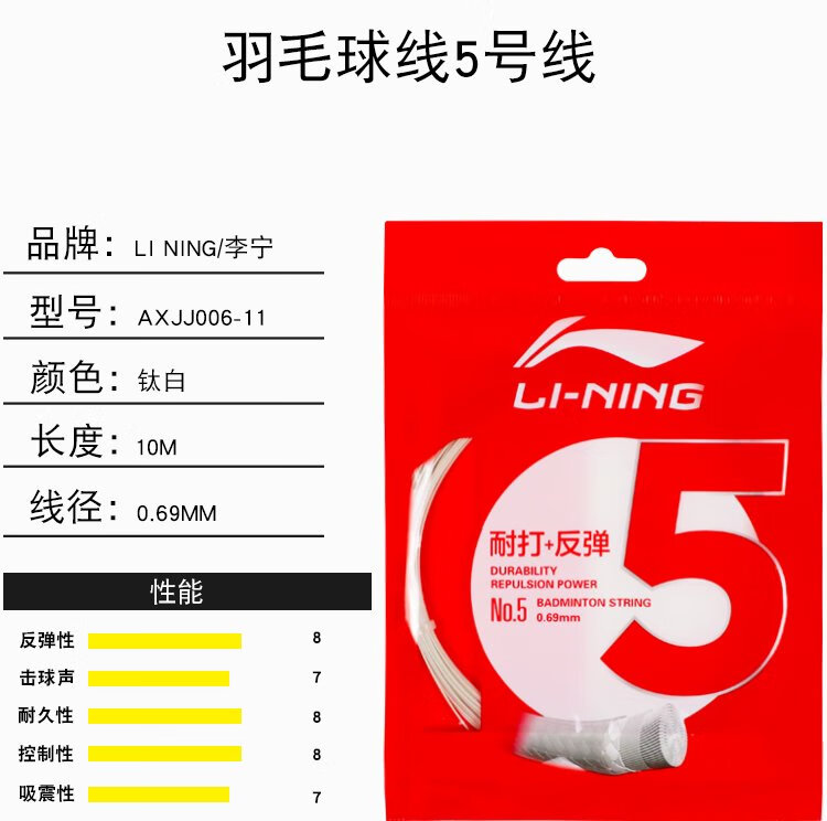 Li Ning Badminton Line Badminton Racquet Line Net Line No. 1 No. 5 Line 1 High Elasticity Line No. 5 Anti-rebound Badminton Line No. 1 (Beige) AXJT017-2