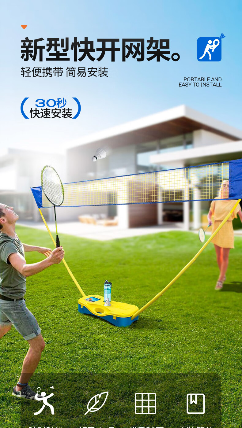 Mengduofu Badminton Net Frame Portable Simple Portable Badminton Net Frame Standard Single and Doubles Mobile Badminton Court 3m Badminton Quick Open Net Frame - Yellow Blue Badminton Net Frame Portable