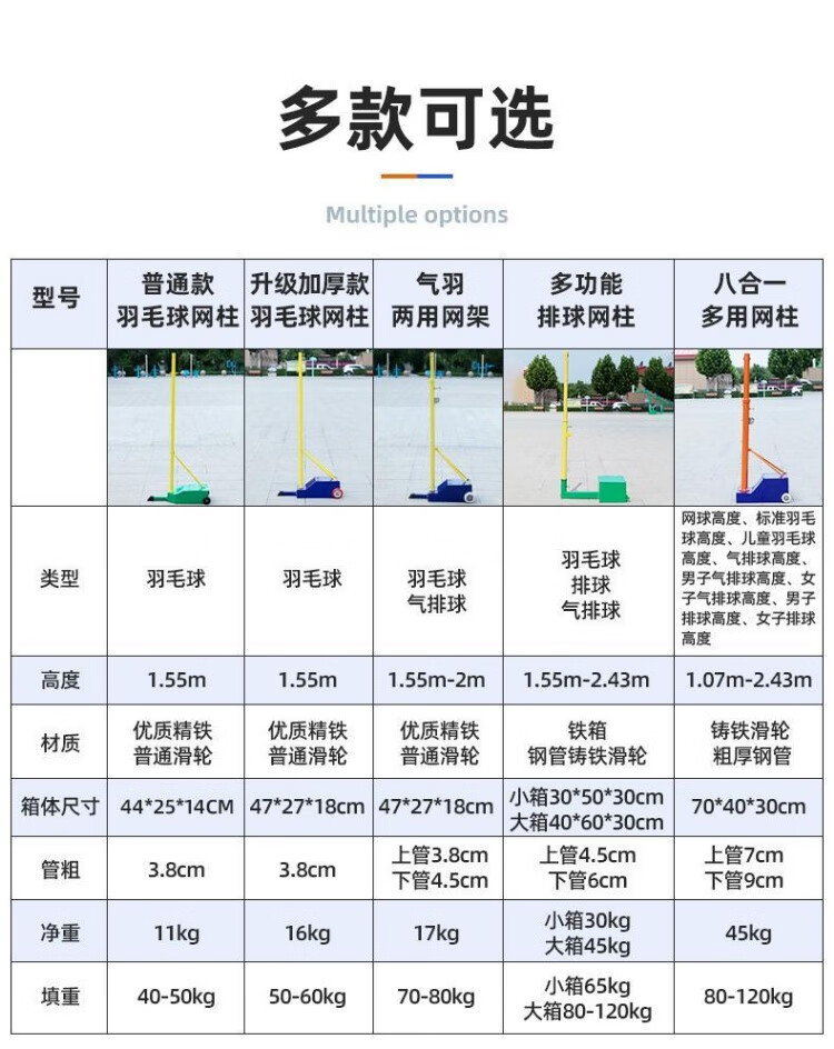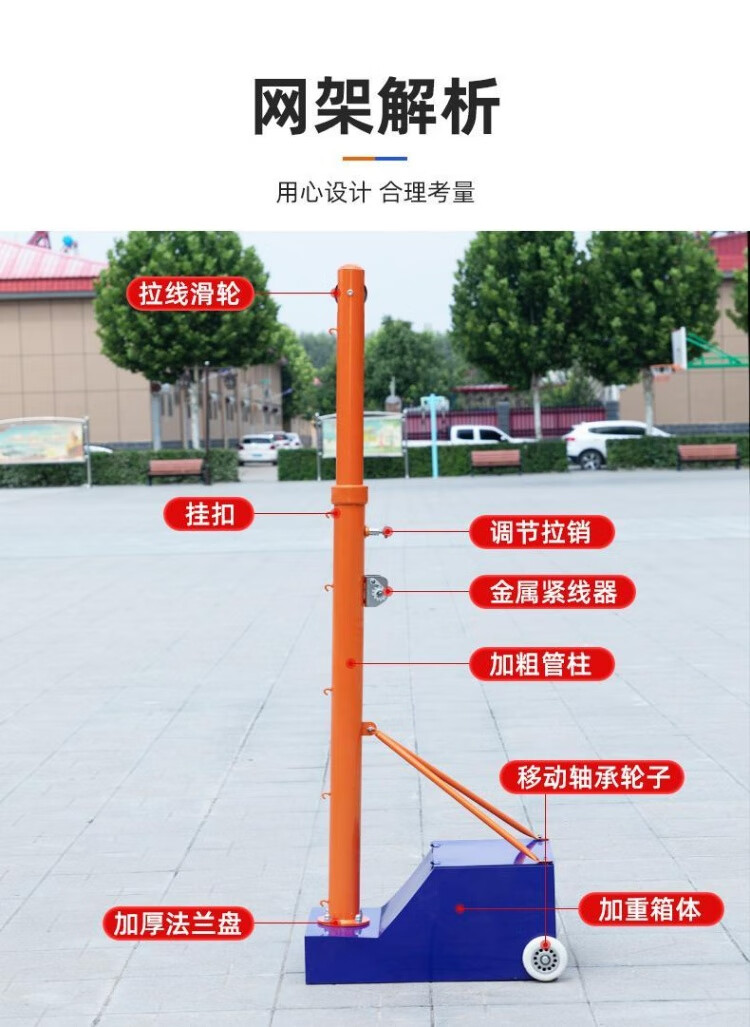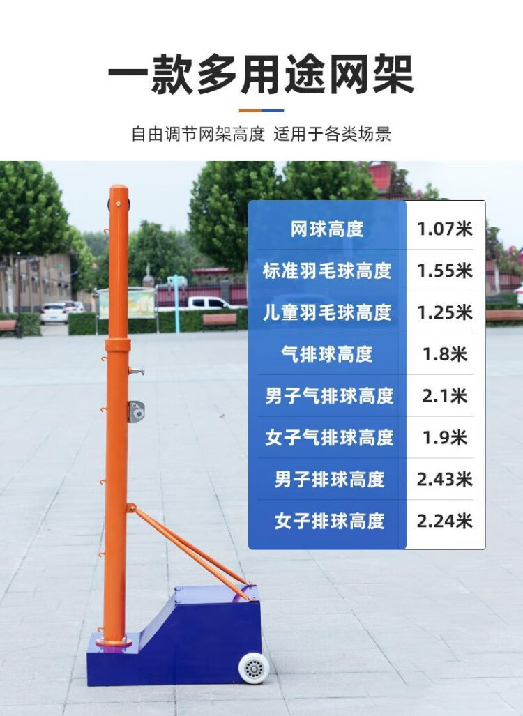 喜多奇室外可移动羽毛球架便携式气排球柱便携标准比赛网球排球支架 6.1m 70公斤铸铁底座羽毛球柱