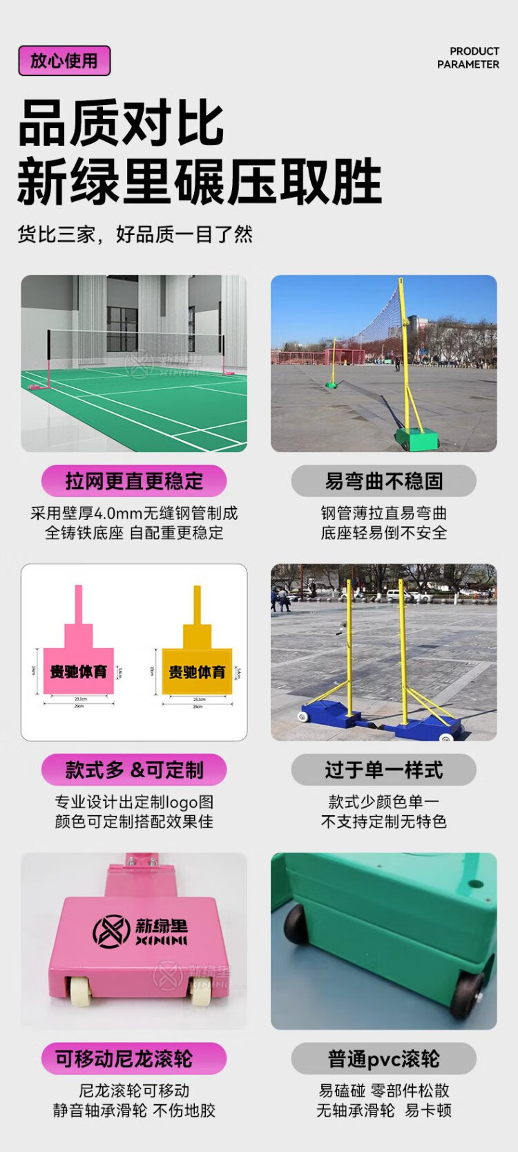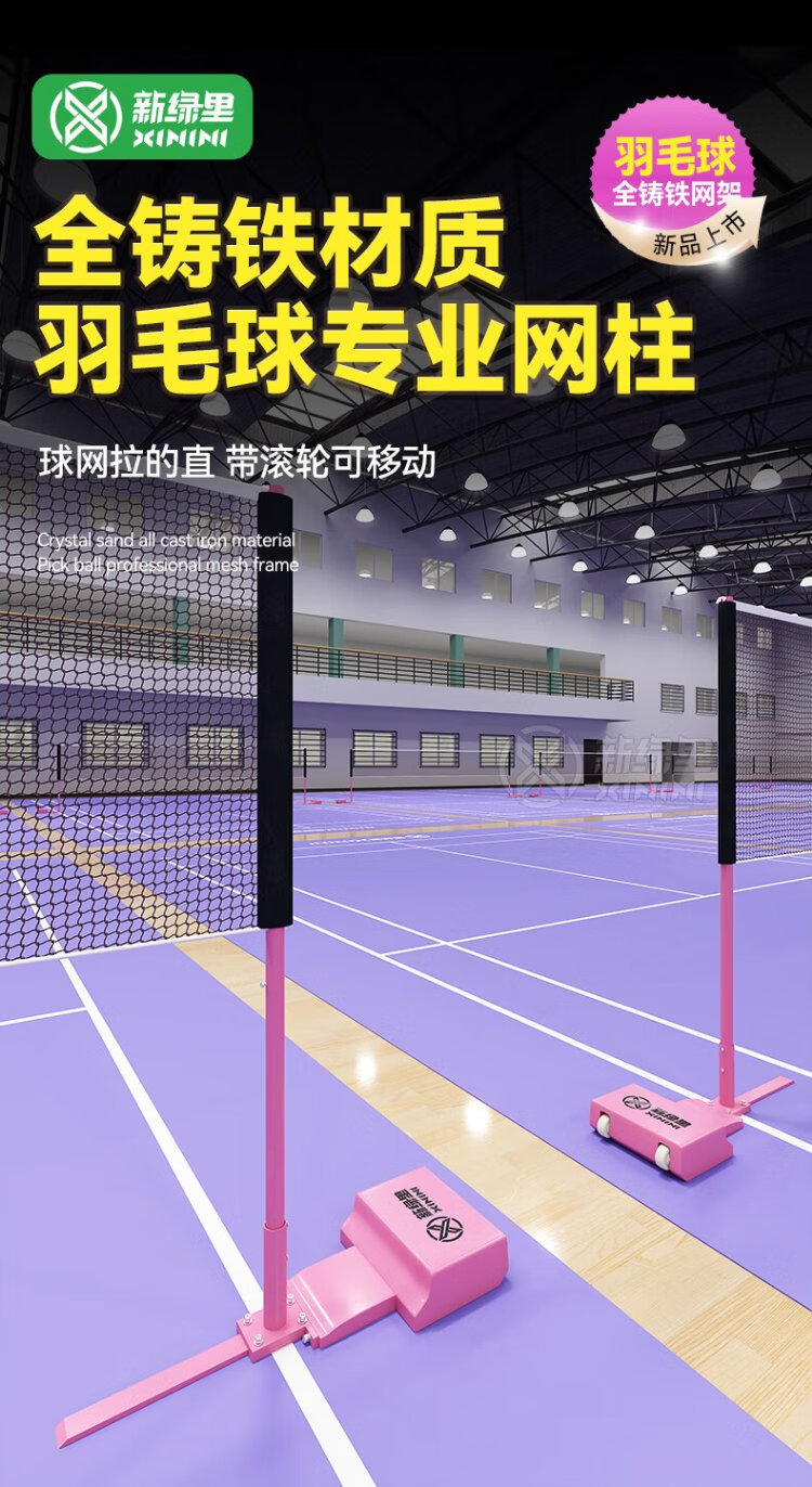 New Green Mile All Steel Badminton Net Frame Mobile All Cast Iron Bold Portable Badminton Net Frame + Net 6.1m All Steel Badminton Net Post/Pair Paris Purple