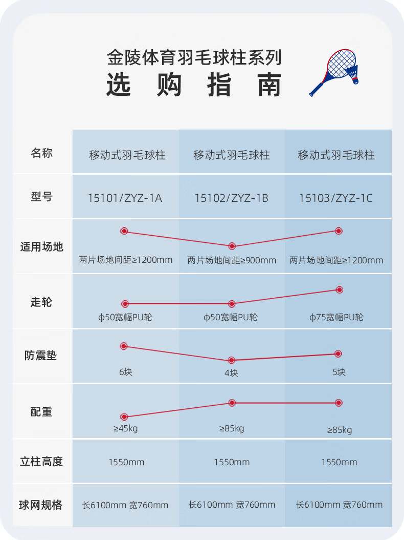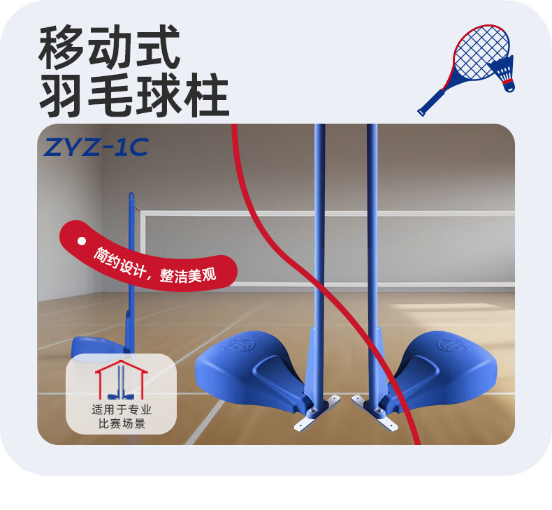 Jinling Jinling Sports Mobile Badminton Column Net Frame Advanced Competition Takeaway Wheel Roller Fitness Competition 6.1m ZYZ-1C Mobile Badminton Column