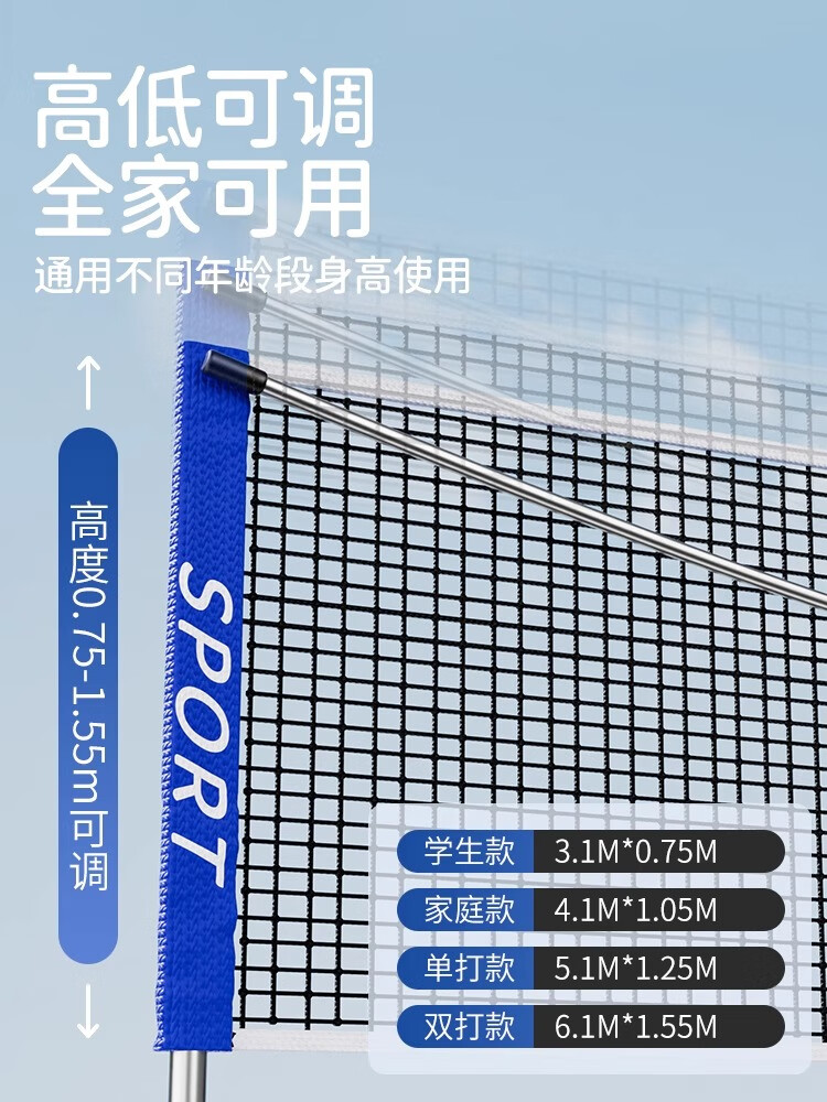 Maifeite Badminton Net Frame Portable Outdoor Partition Standard Net Belt Bracket Household Folding Simple Mobile Special Block 6.1m Doubles Model Free Net + Bag Height Adjustable