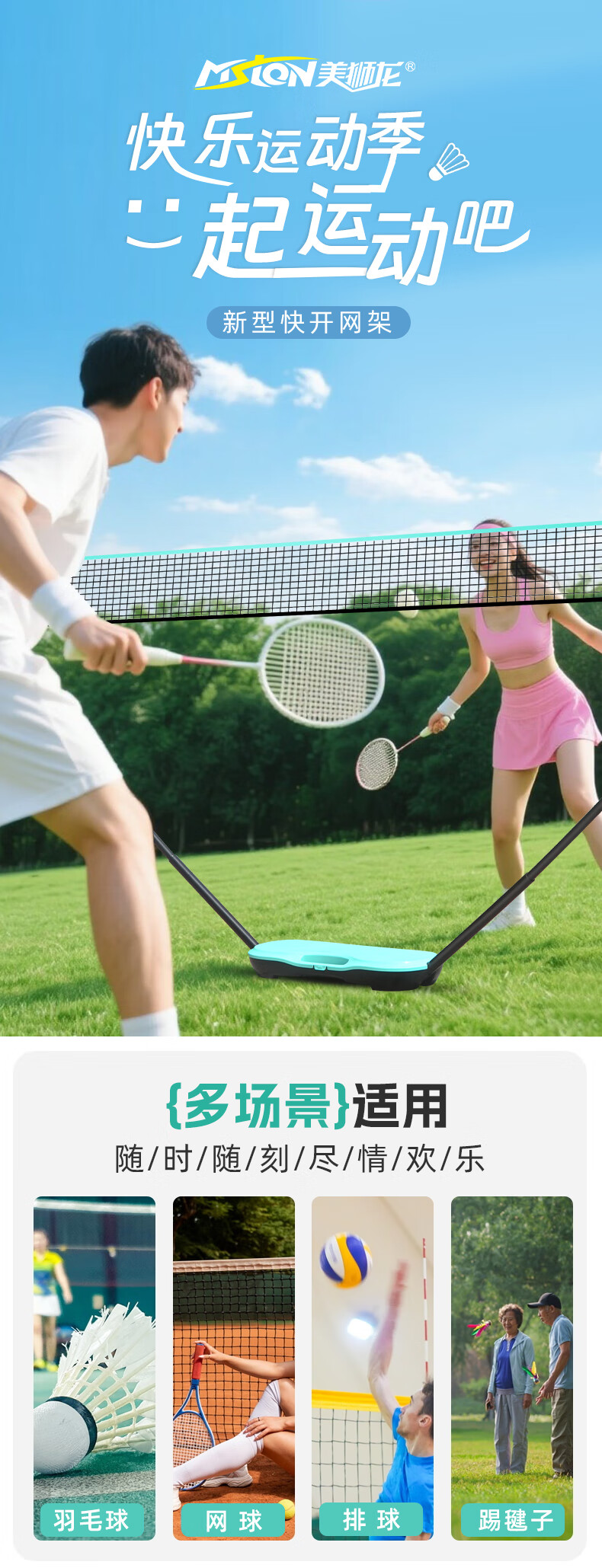 Meishilong Cadre de Filet de Badminton Cadre de Filet Portable Filet de séparation extérieur Standard Simple Support Mobile Poteau de Blocage à la Maison 4 m Cadre de Filet Vert Menthe (Produit Breveté)
