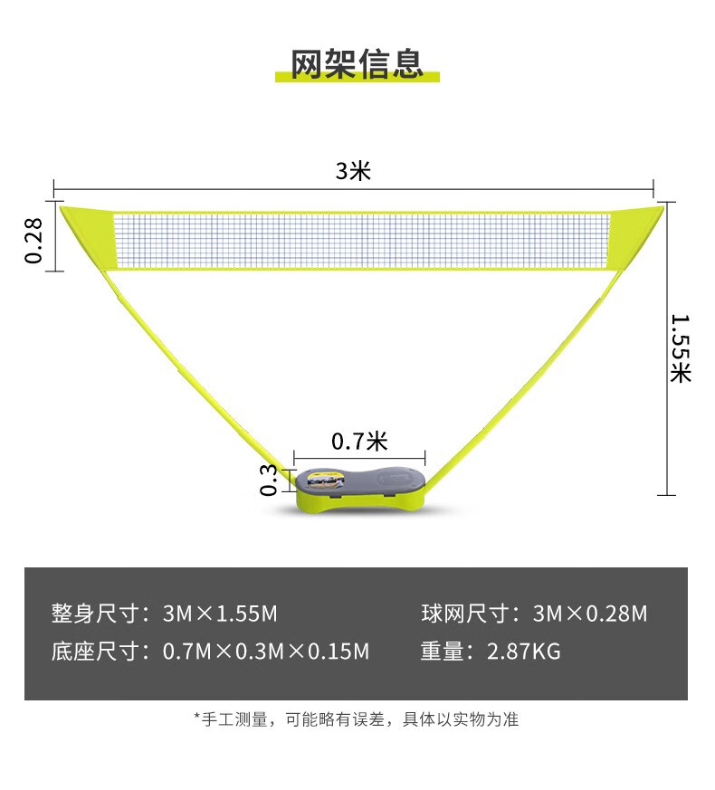 美狮龙(meishilong)美狮龙羽毛球网架网便携式家用室内户外简易移动网架标准比赛折 2.7m 橘黄色(小巧便携款)