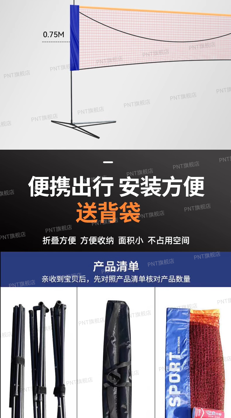 Badminton Net Frame + Net Portable Folding Indoor and Outdoor Venue Badminton Net Frame 3.1m Student Model Includes Rack + Net + Bag