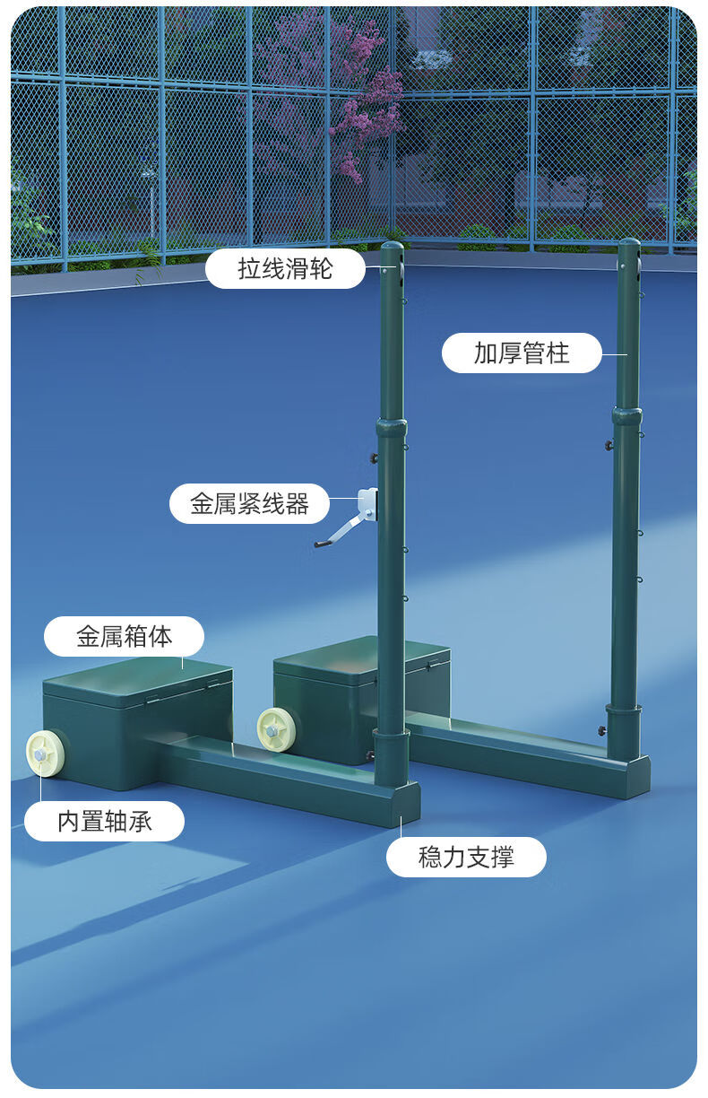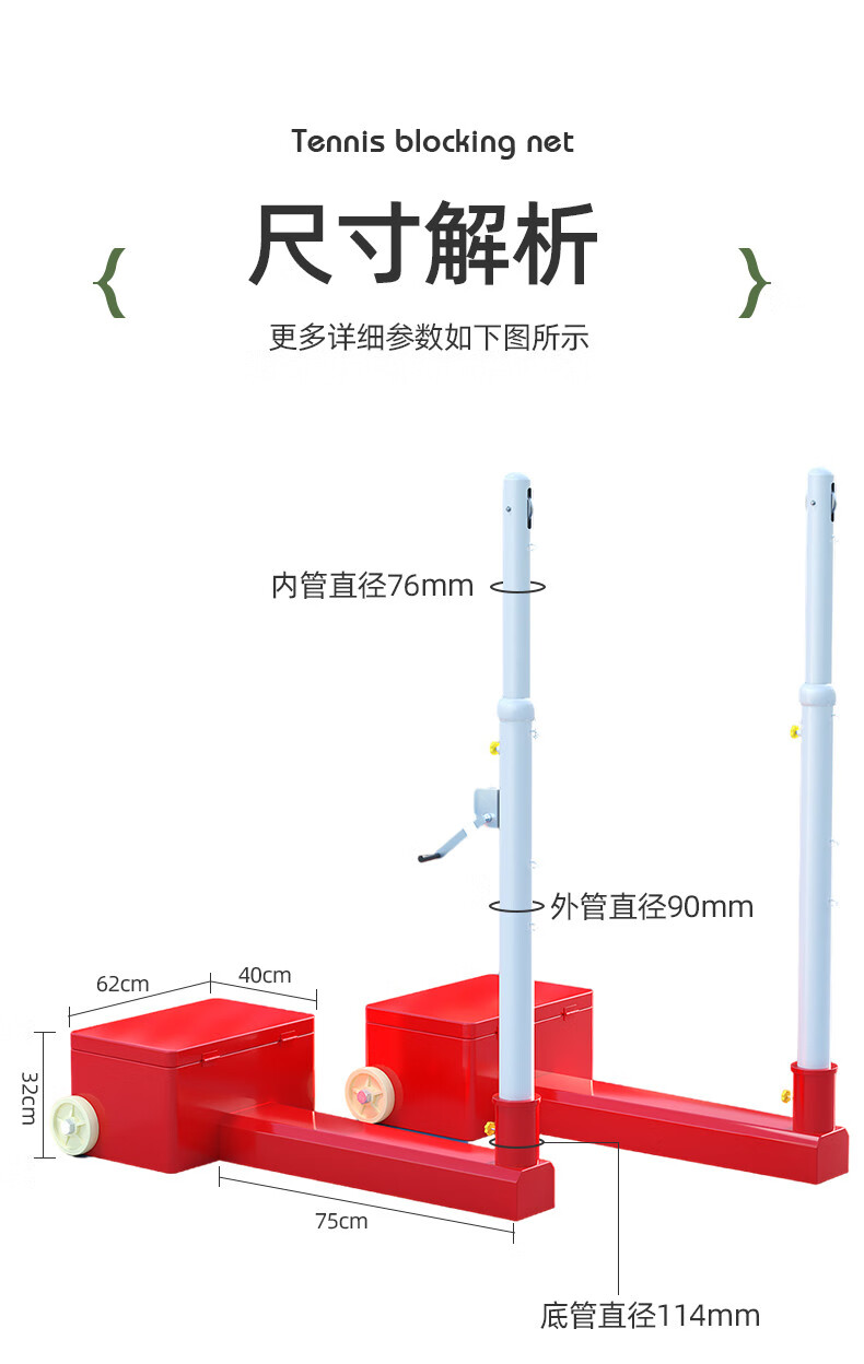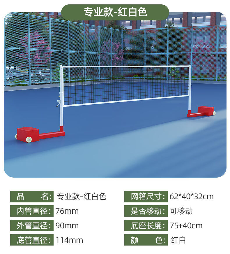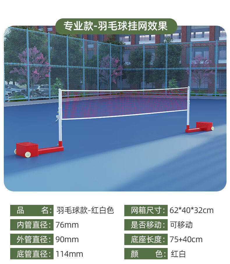 大团小圆移动羽毛球网架便携式室外标准专业网球架男排女排多功能气排球柱 76m 高档型白红色【b