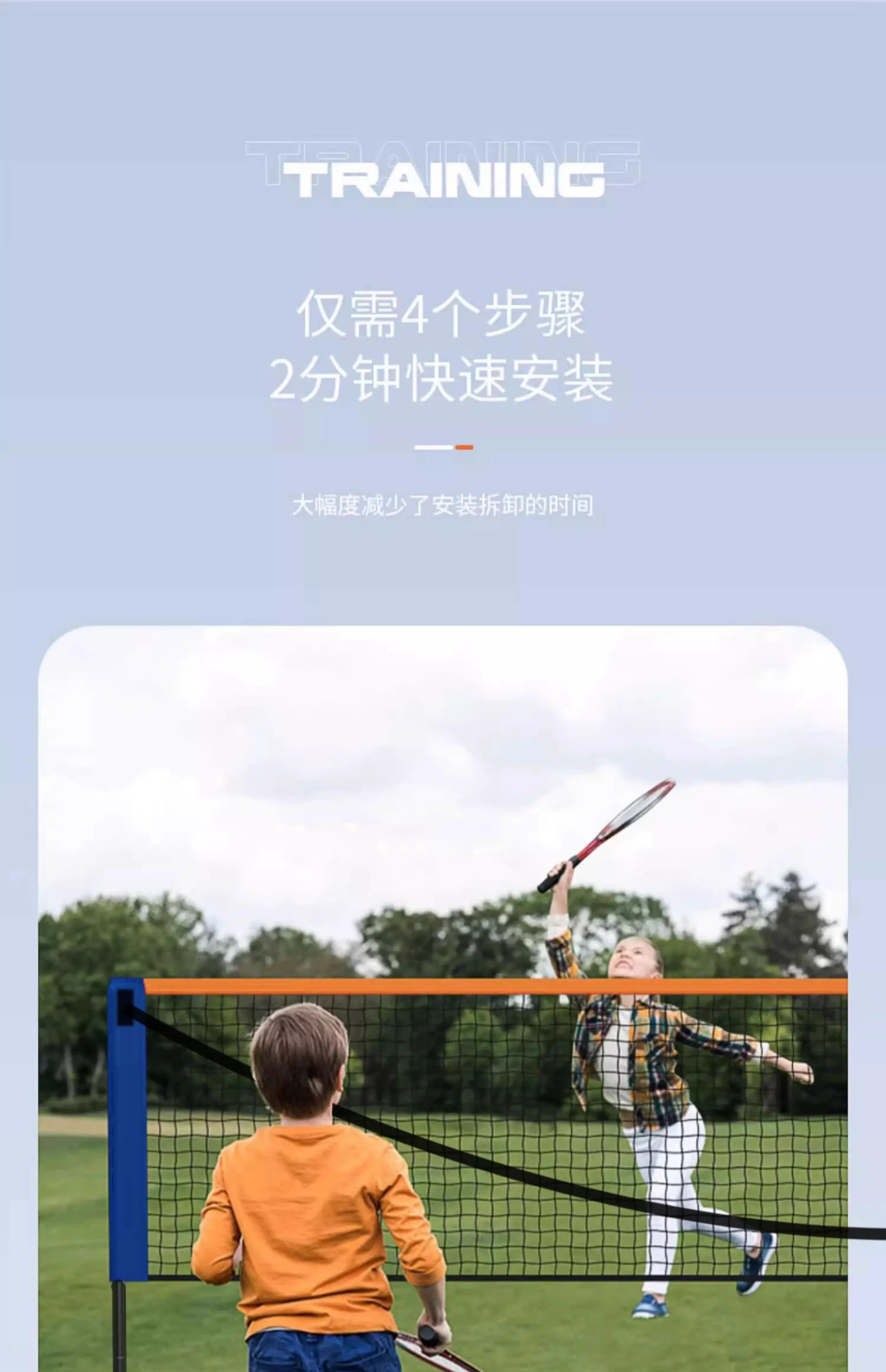 米囹羽毛球网架便携式可折叠标准羽毛球网支架室内户外单双打网U 6.1m 6.1米学生款(含架子+网+包)镀锌铁管