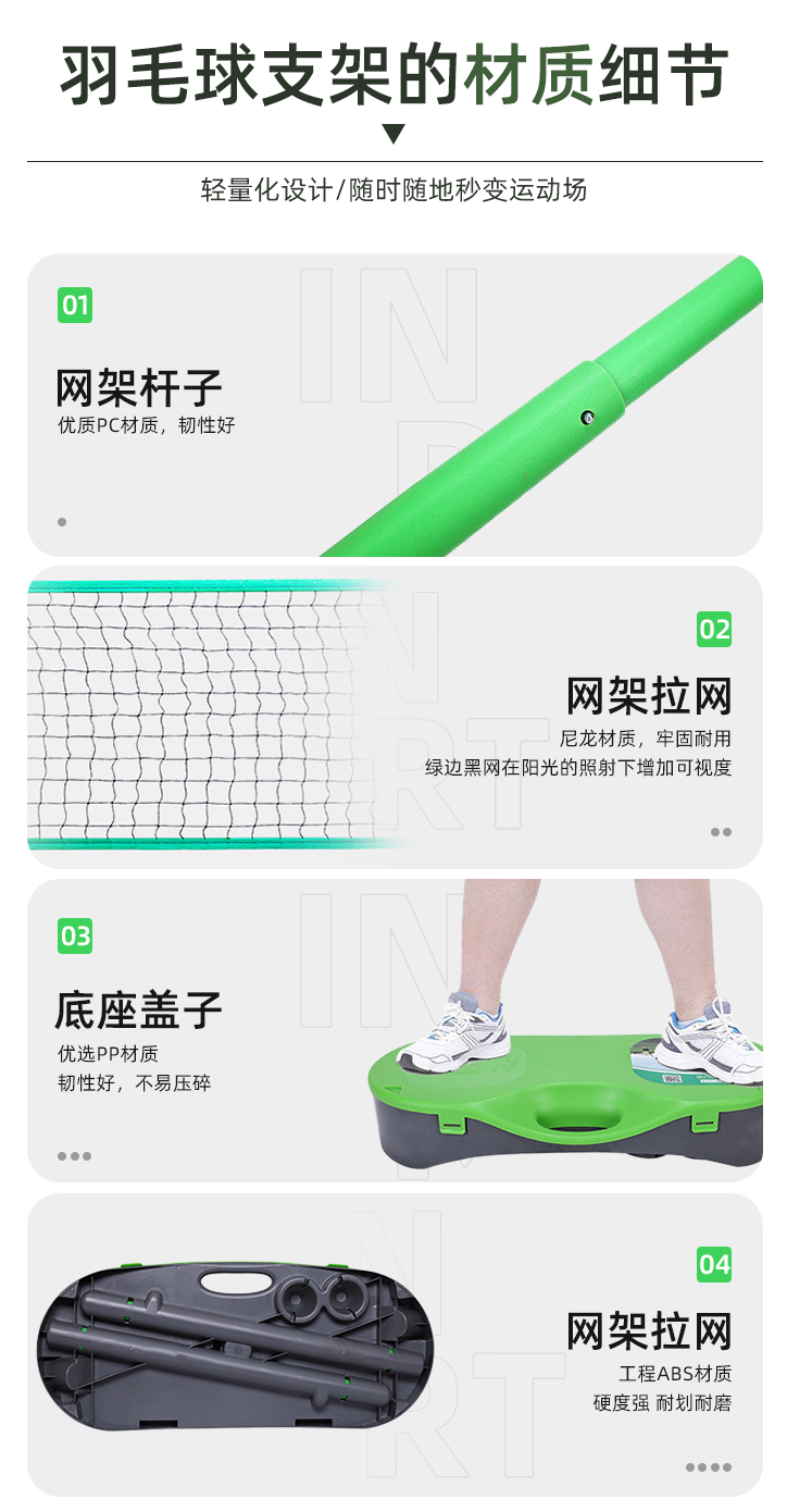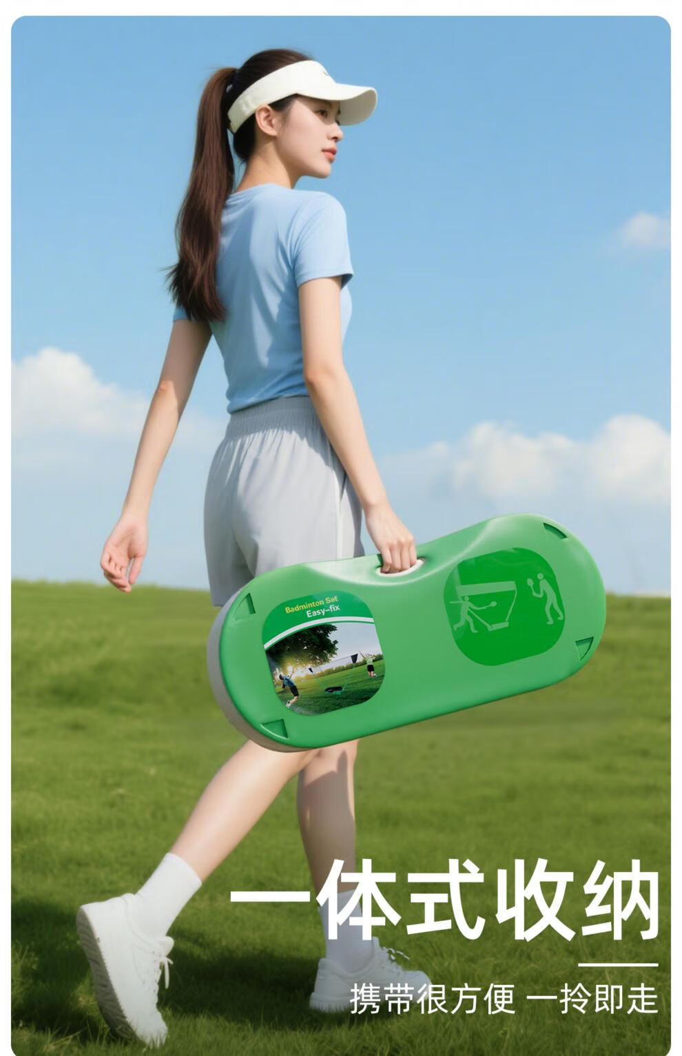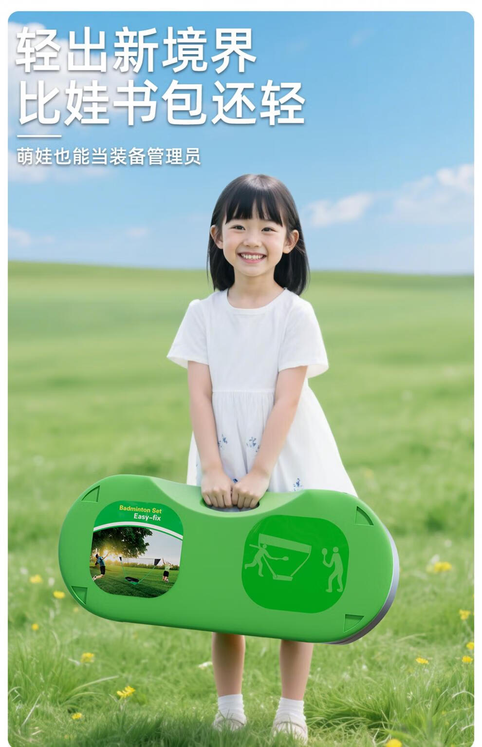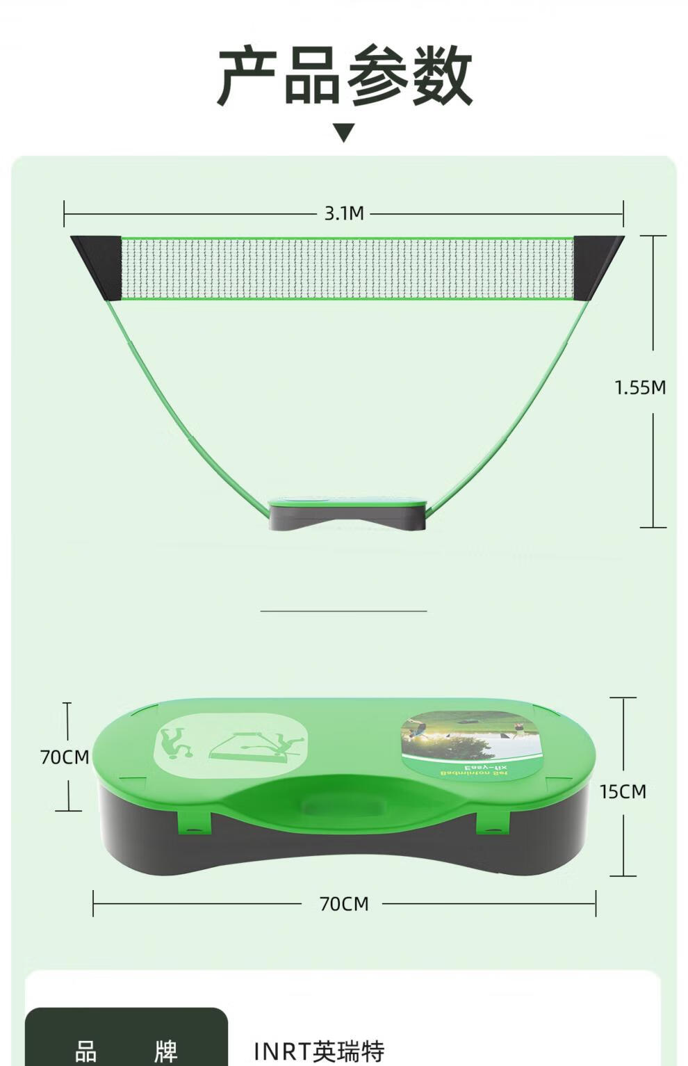英瑞特(YINGRUITE)羽毛球网架便携式支架家用快开折叠户外室外隔断拦网移动简易手提 草茵绿网架+双拍粉蓝套装组合更优惠赠耐打羽毛球*3