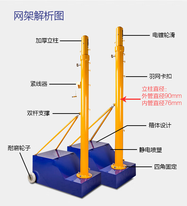 博森特(BOSENTE)羽毛球网架 室内外气排球柱移动标准升降排球气排球网架 普通小箱羽毛球架