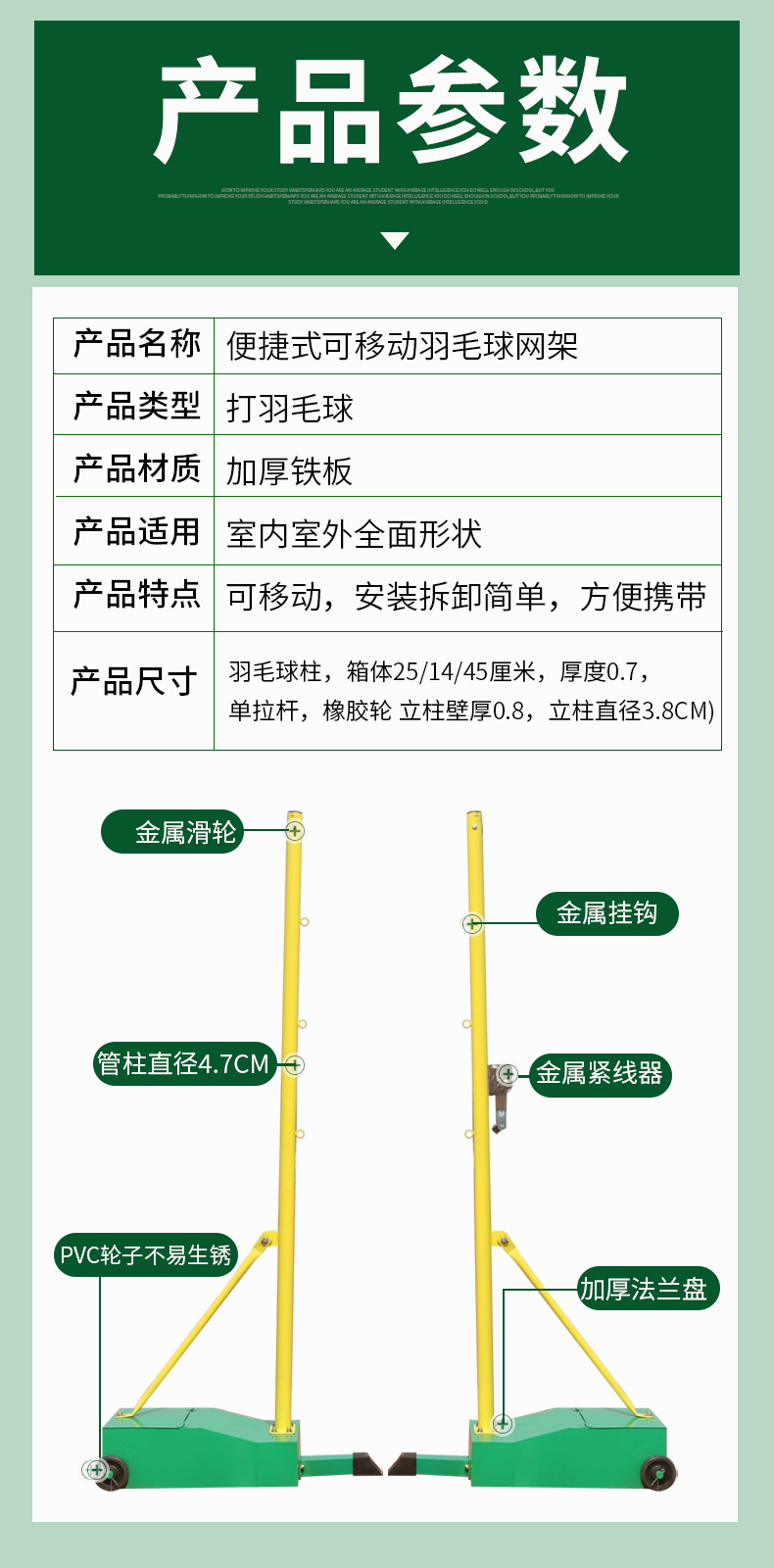 班宝缇羽毛球网架可移动标准多用网柱网架室内外比赛用多功能排球架子 标准款网柱+羽毛球网