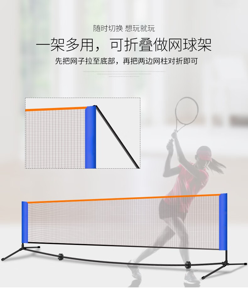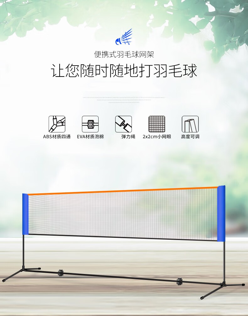 糜岚升级款可移动羽毛球网架41米51米61米合金材质便携式套 2点1m儿童款合金管网架+网