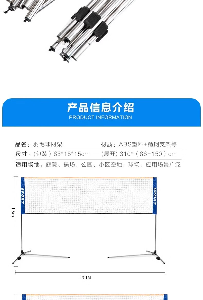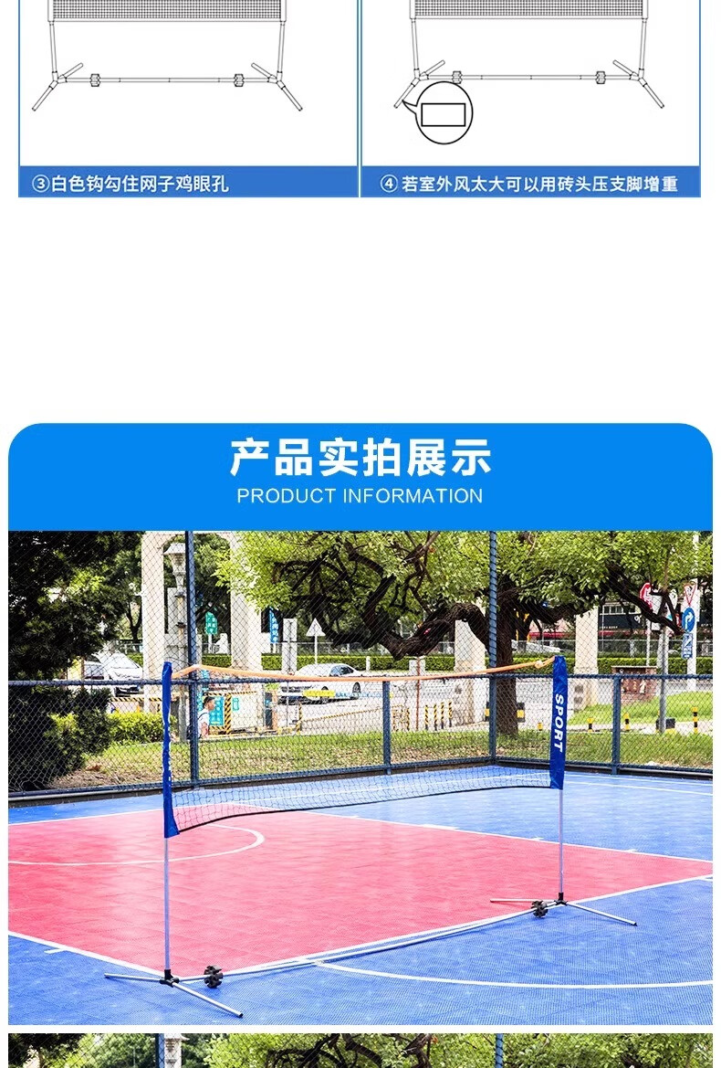 REXL Badminton Net Stand Portable Standard Partition Net Outdoor Pickleball Net Stand Simple Outdoor Mobile Folding 3 Points 1m Student Model Upgraded Triangular Support