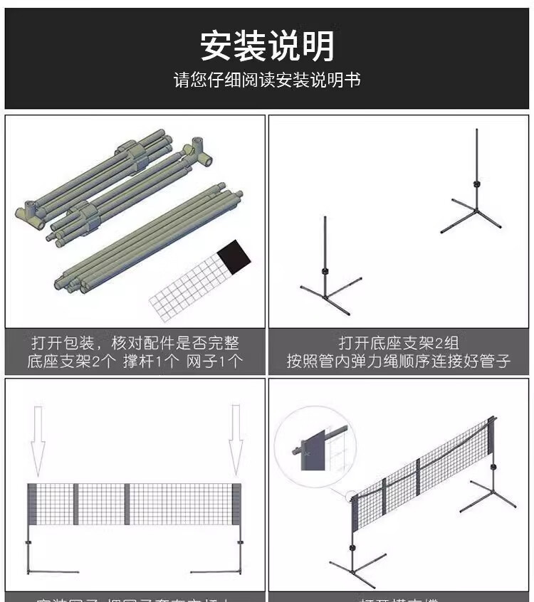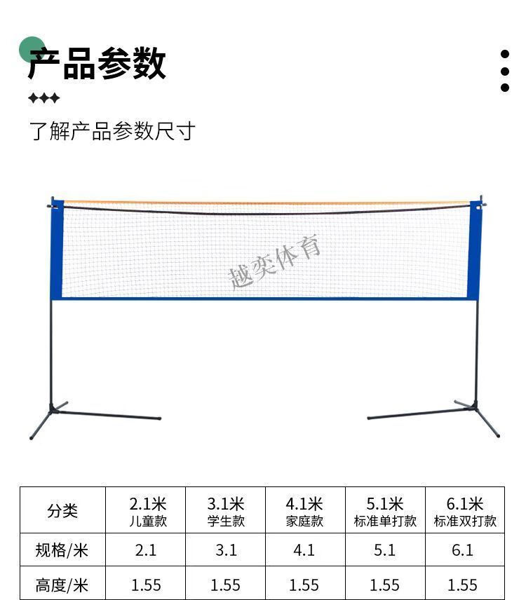 宰搂便携式羽毛球网架折叠可移动简易室内家用标准拦户外场地网柱架子 2点1米球网不含架子